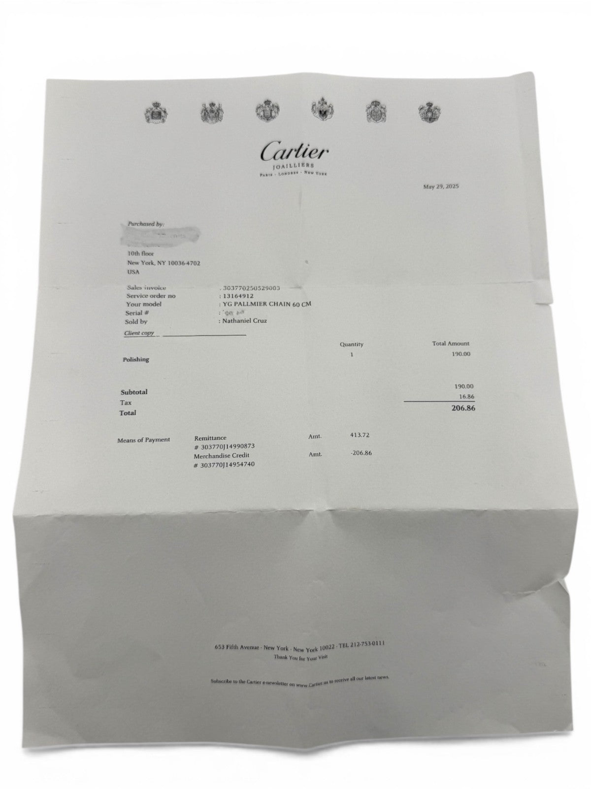 Style: Cartier Yellow Gold  Pallmeir Chain