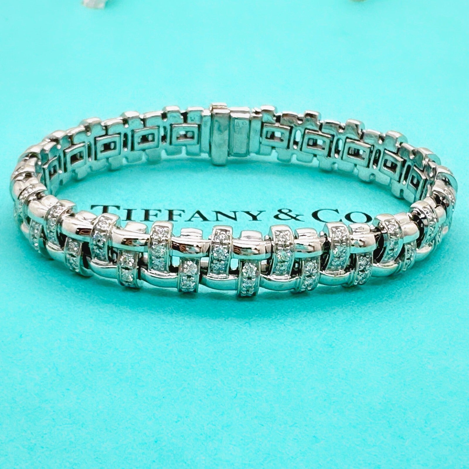 Tiffany & Co Vannerie Basket Weave Diamond Bracelet in 18kt White Gold