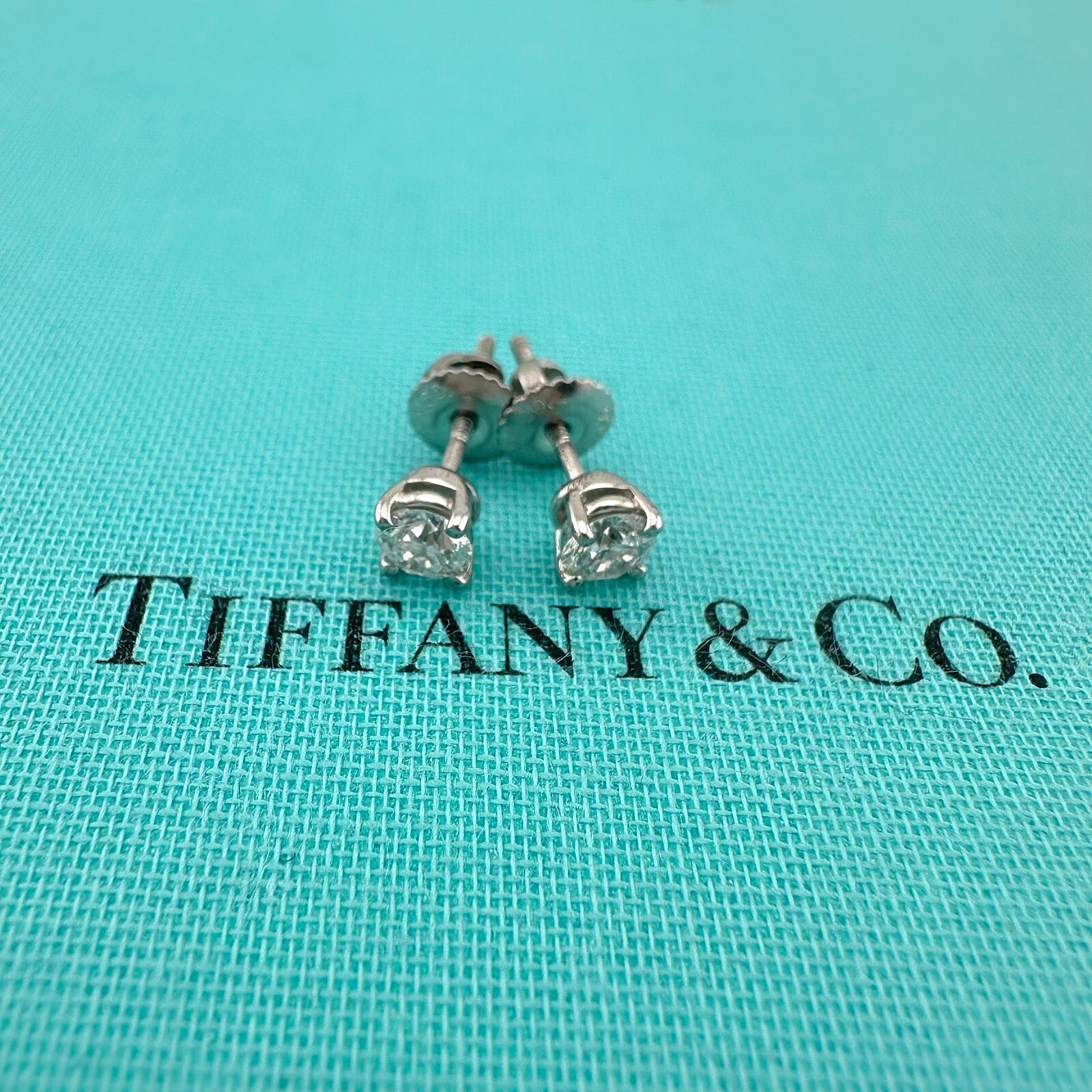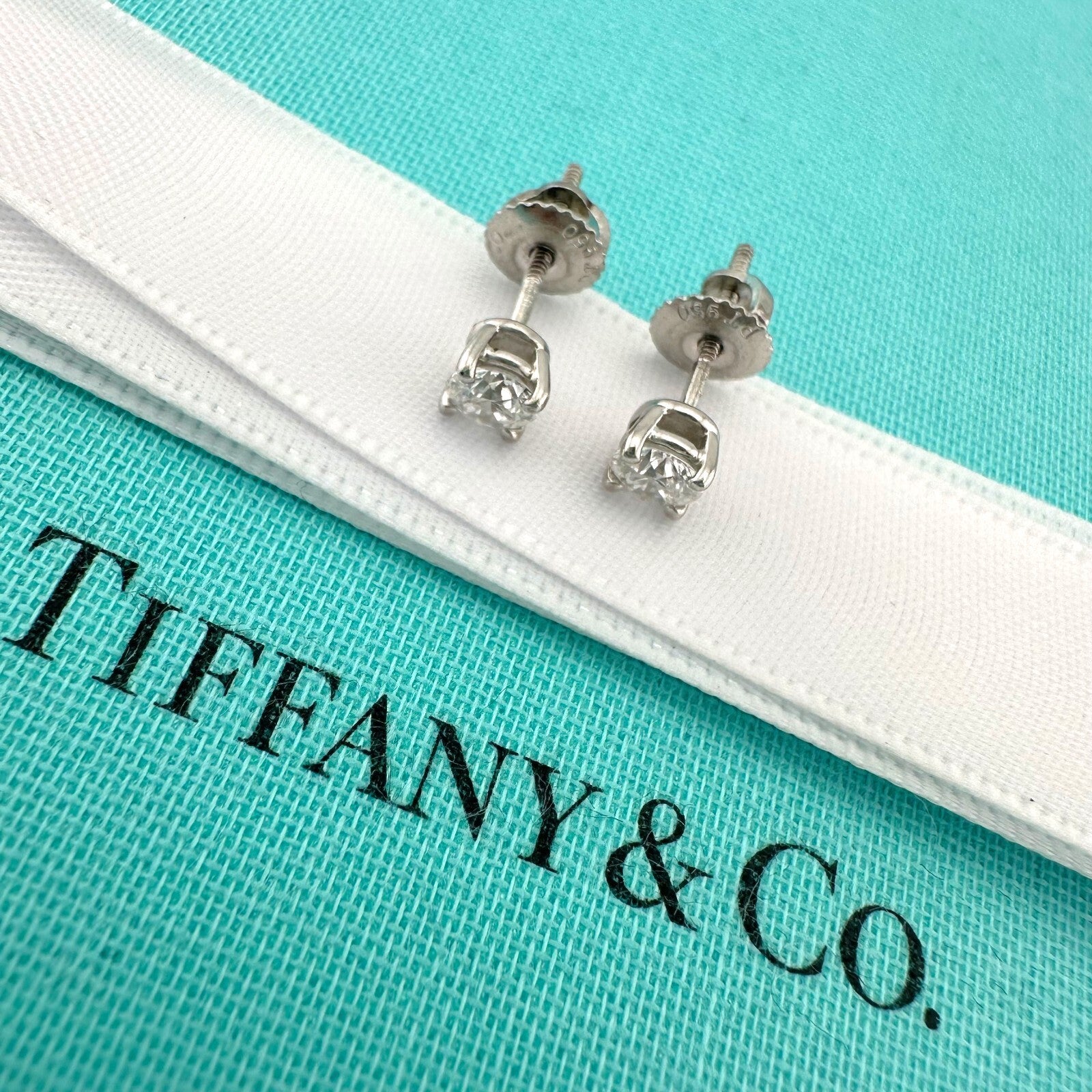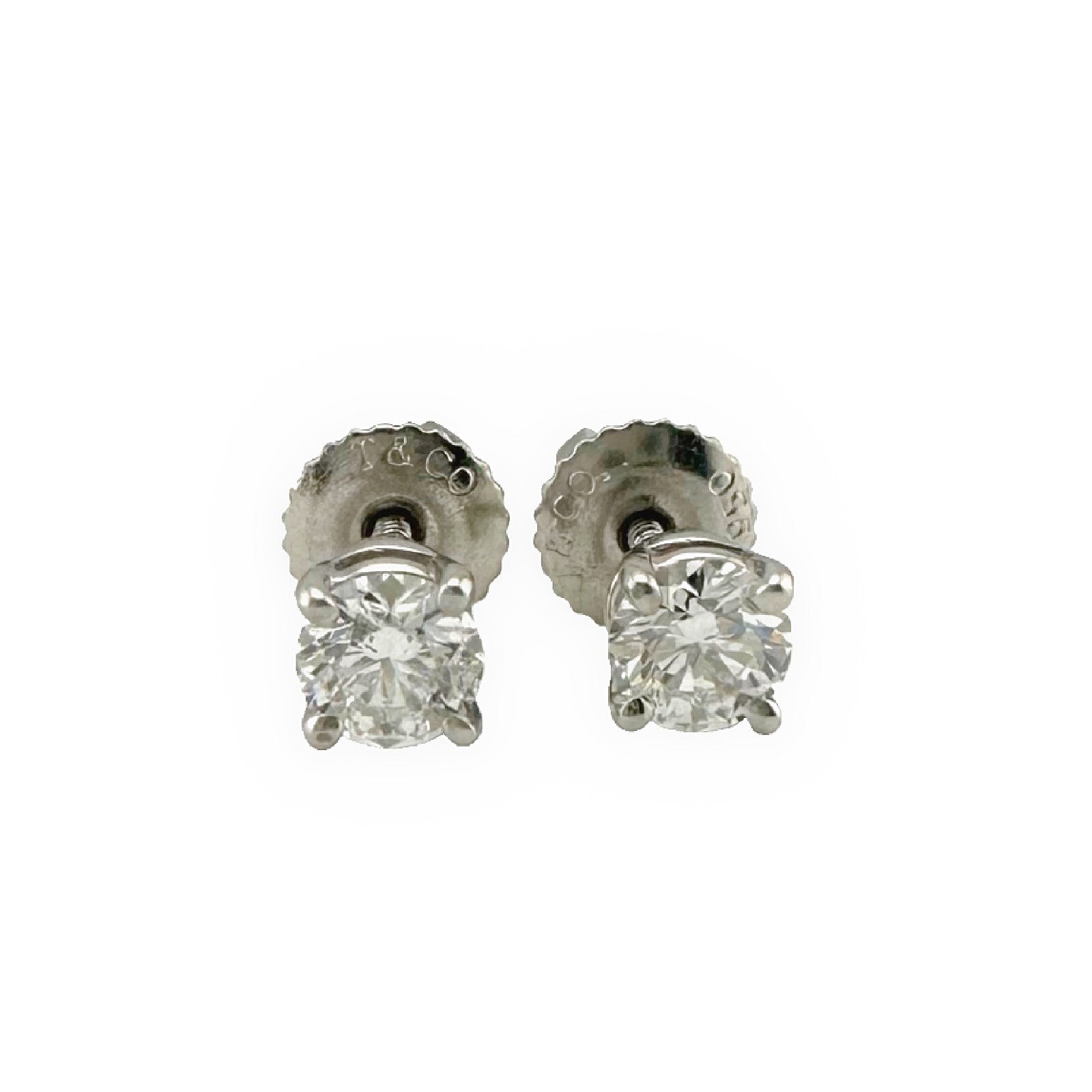 Tiffany & Co Platinum Round Diamond Stud Earrings 0.54 tcw