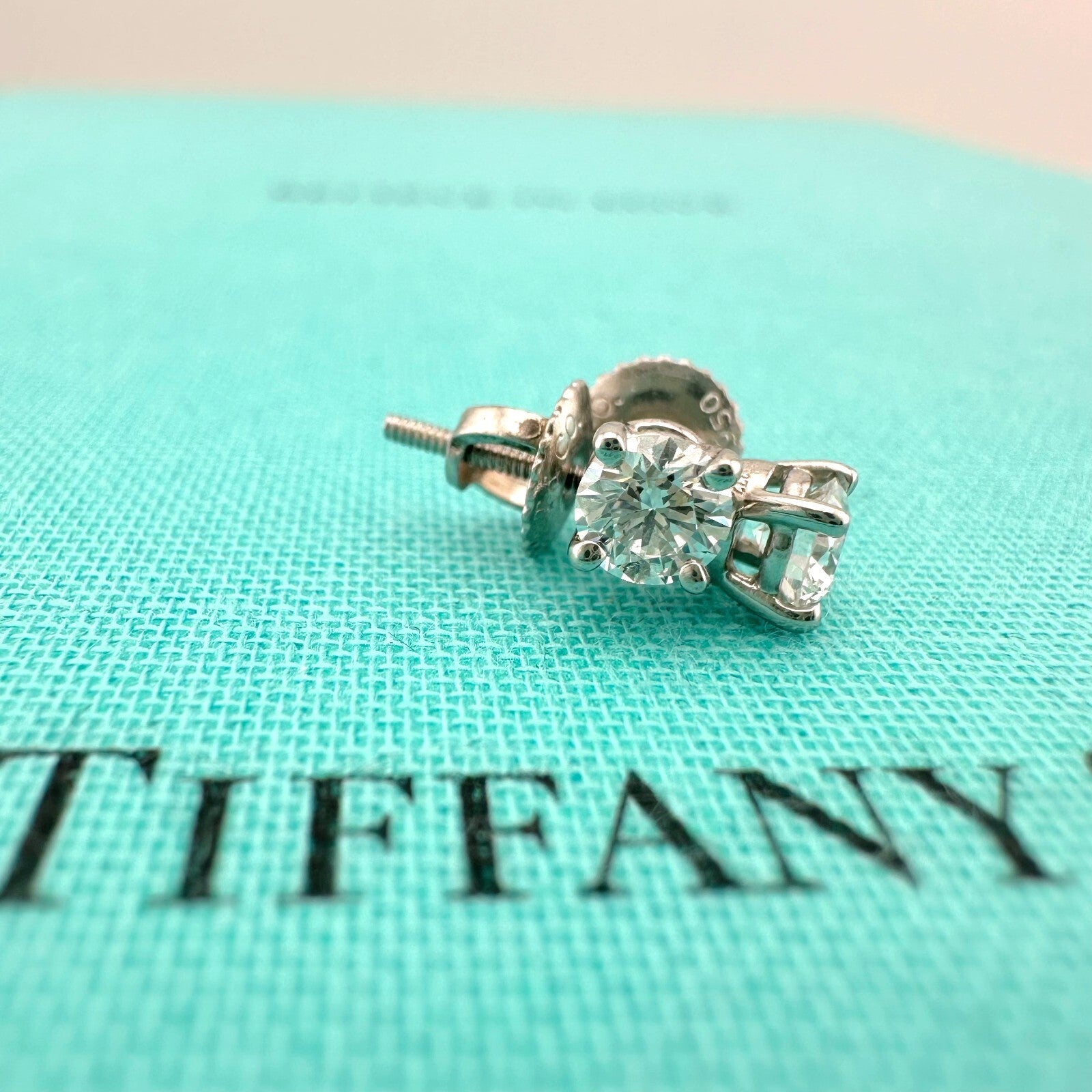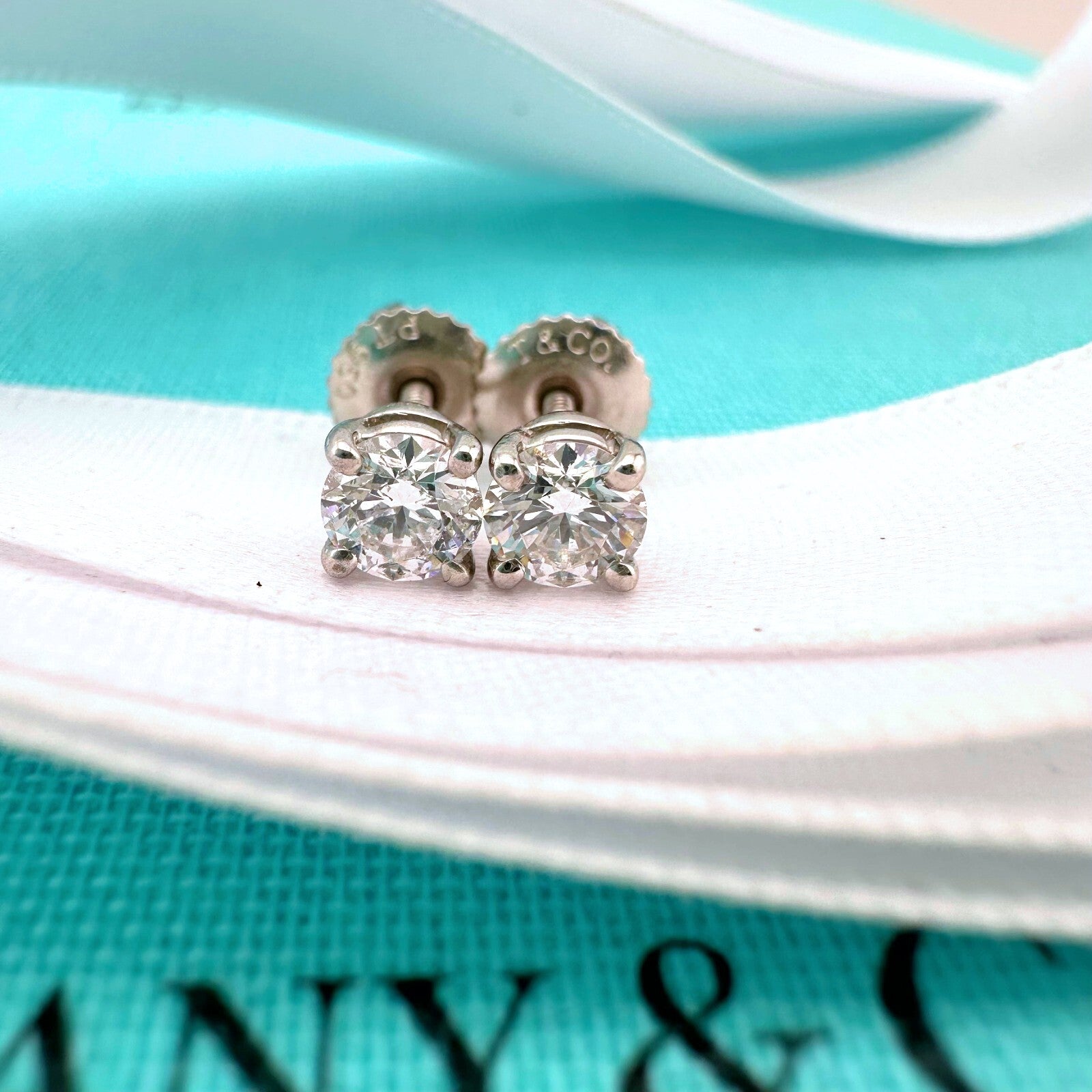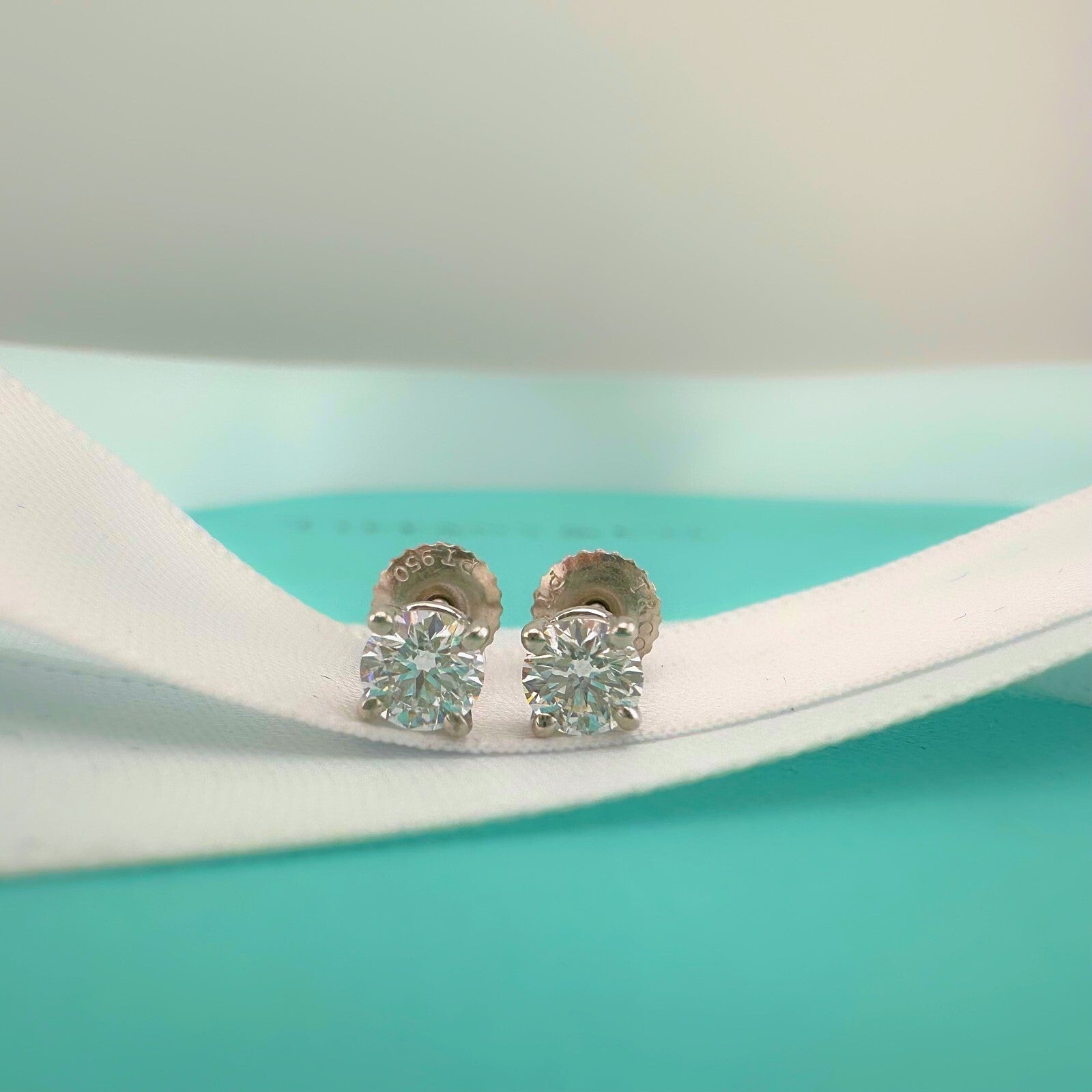 Tiffany & Co Platinum Round Diamond Stud Earrings 0.54 tcw