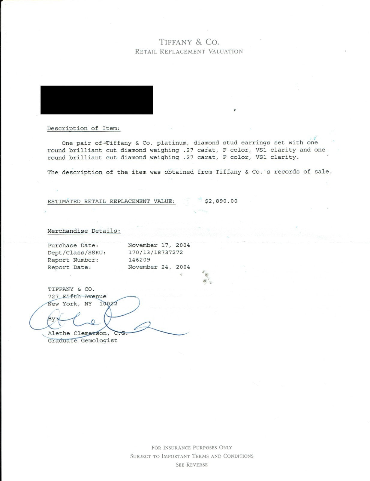 Includes: T&C Diamond Report - T&C. Inner & Outer Earring Box - T&C Original Appraisal