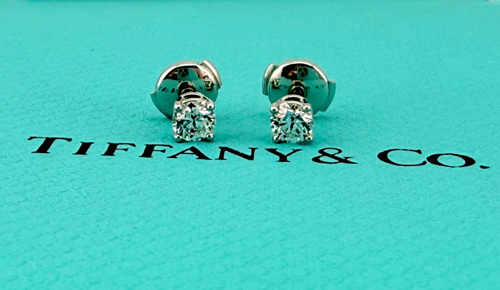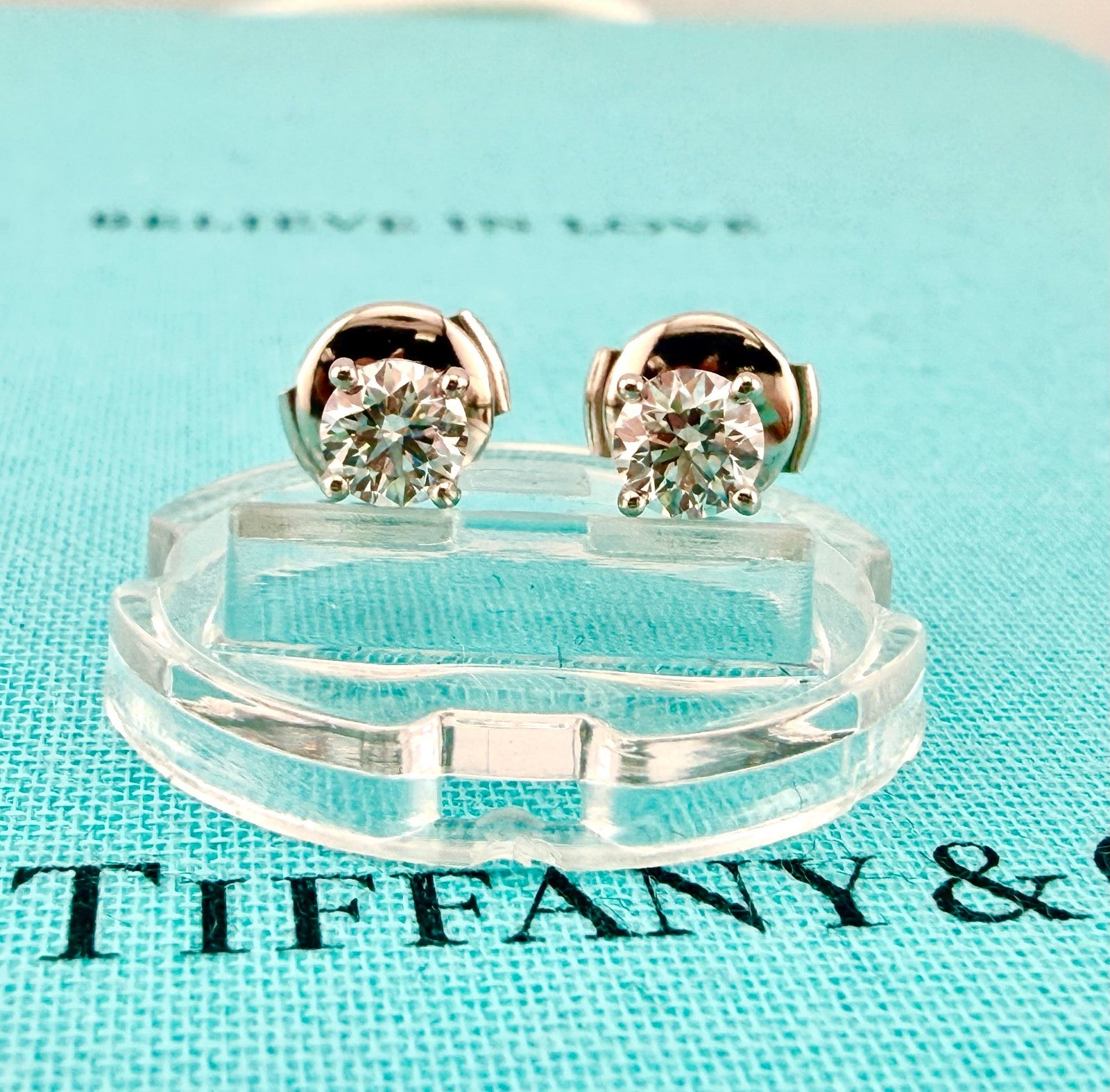 Tiffany & Co Platinum Round Diamond Stud Earrings 0.77 tcw F VVS2 Papers Box
