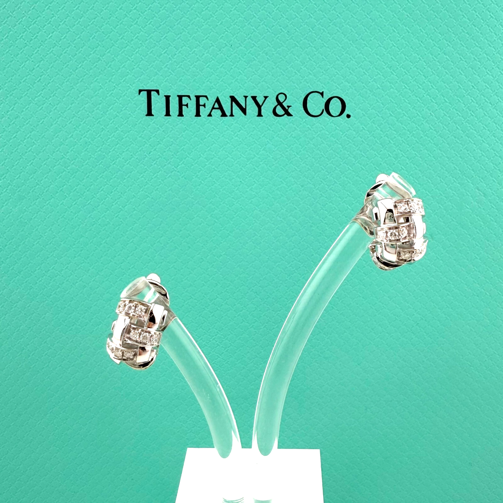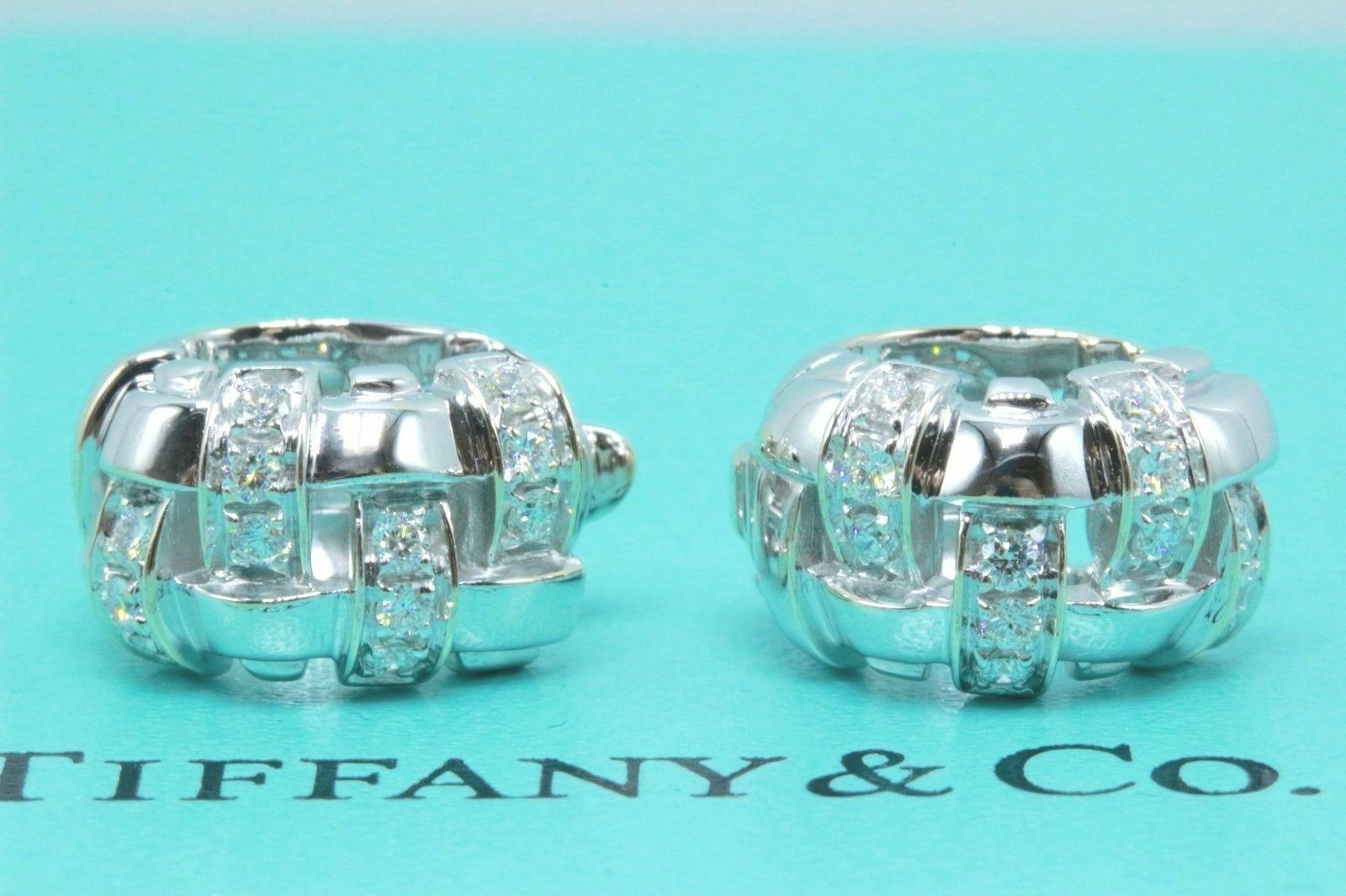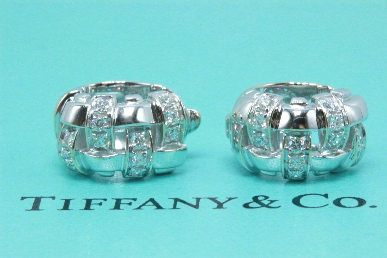Tiffany & Co Vannerie Basket Weave Diamond Earrings 18k White Gold