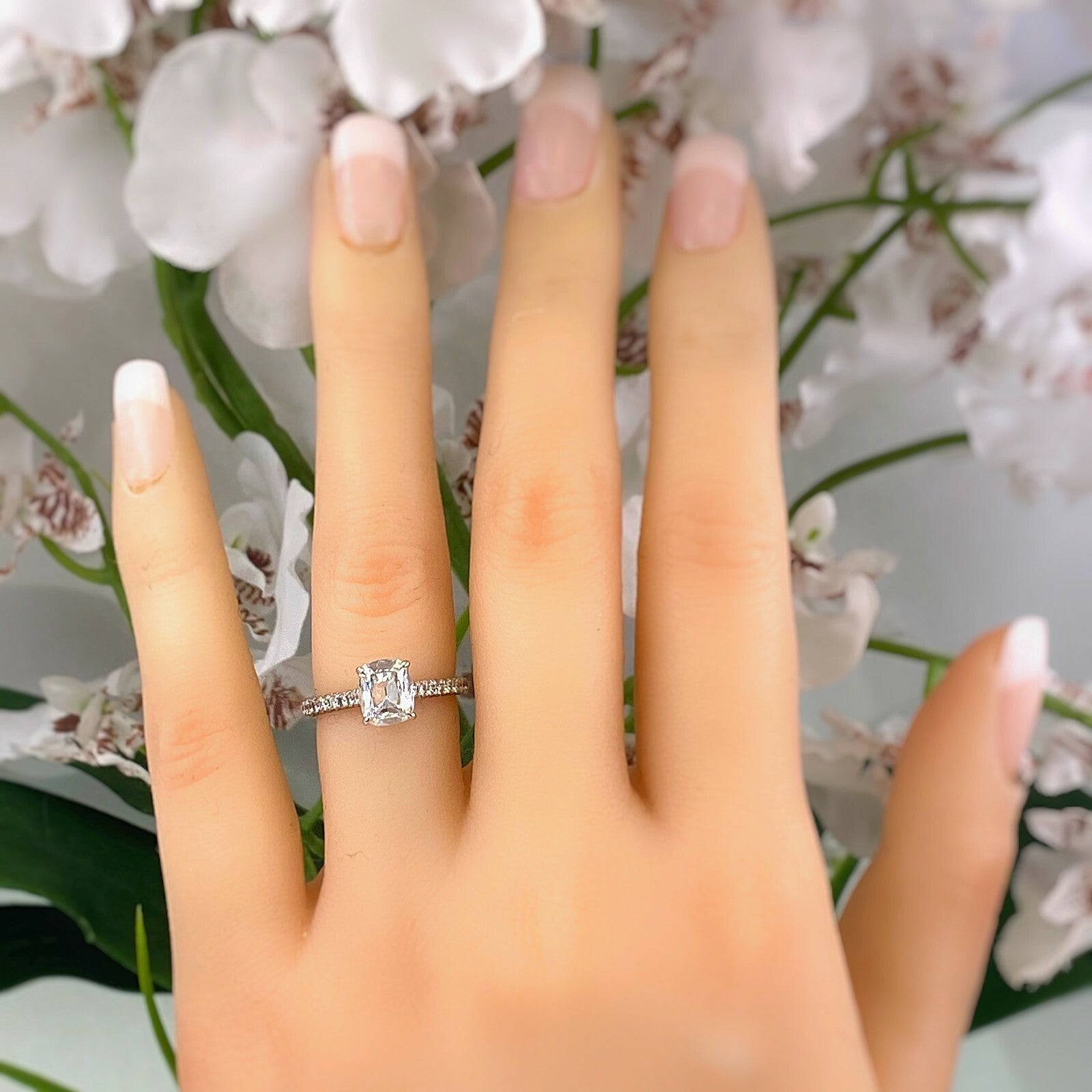 Henri Daussi 1.02 CTS Cushion Diamond Three Sided Solitaire Engagement Ring 14k