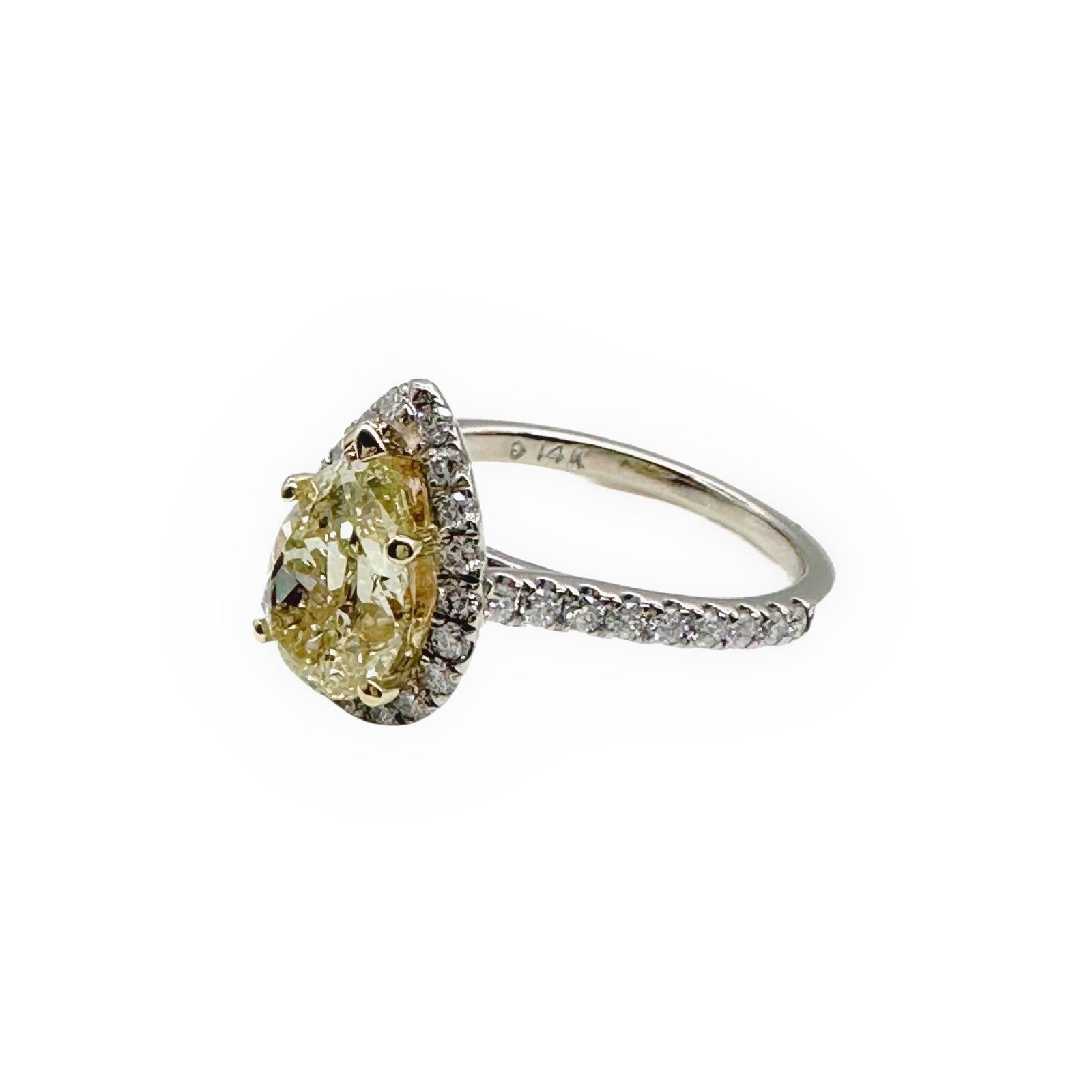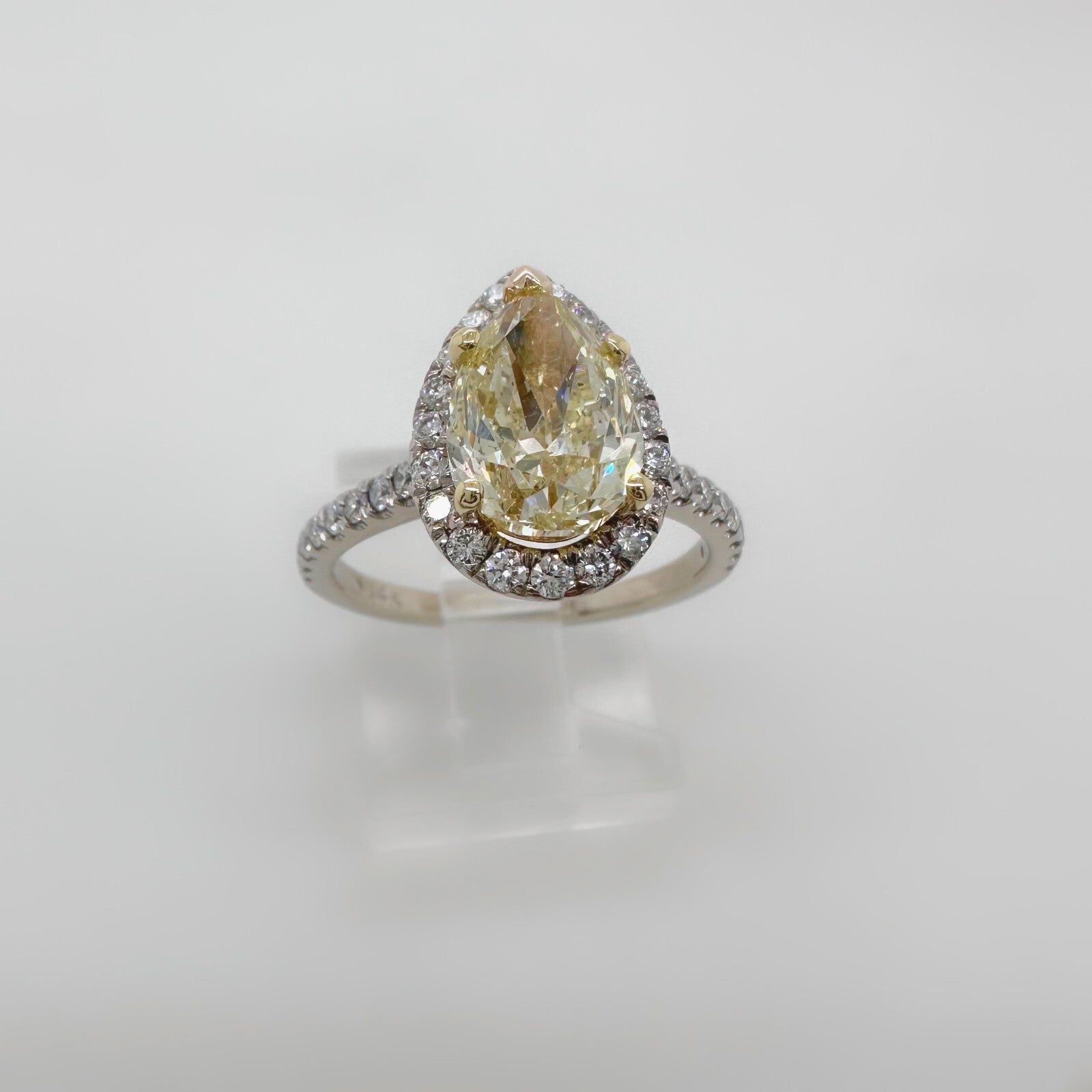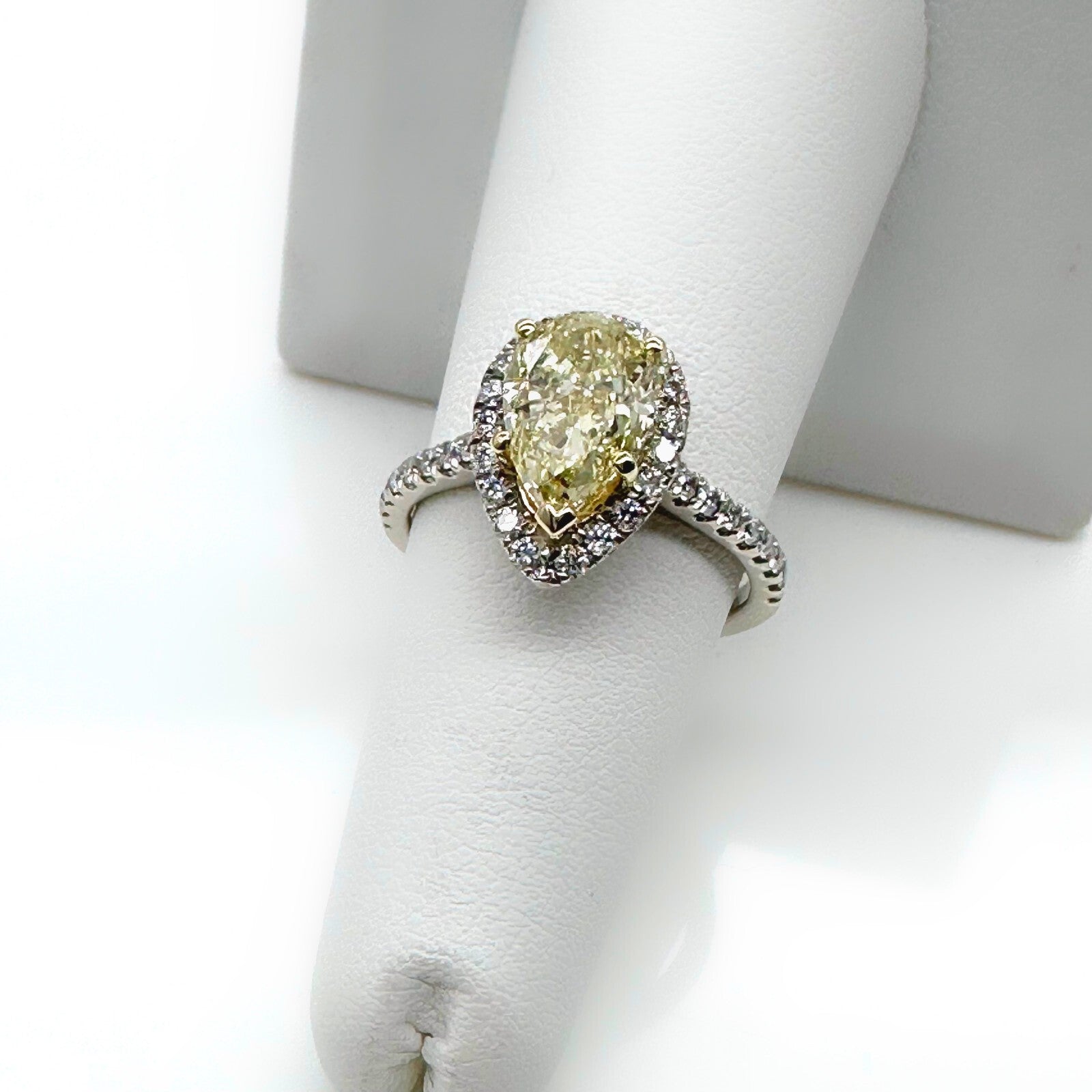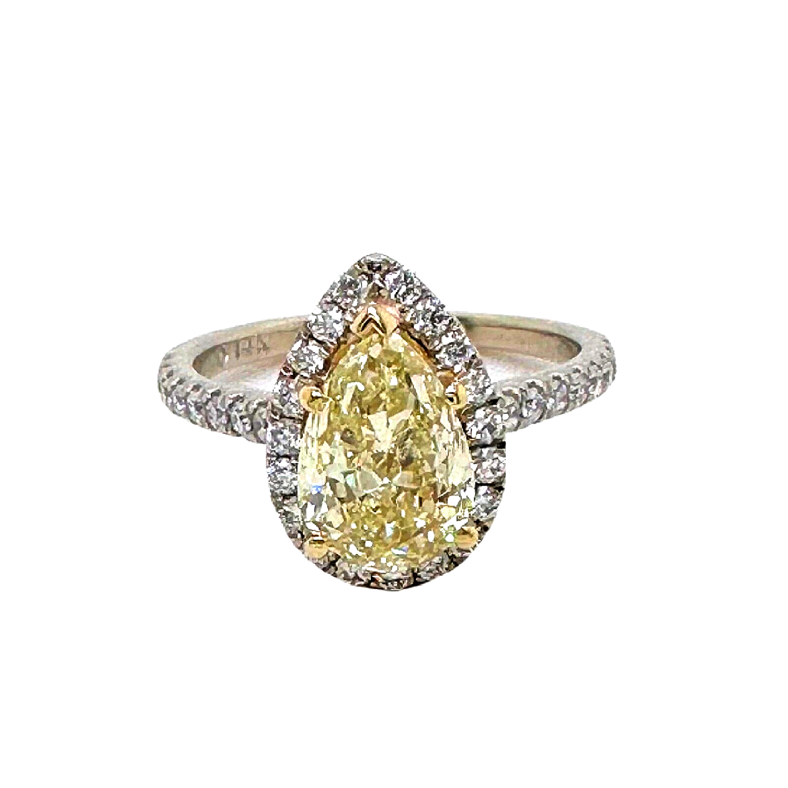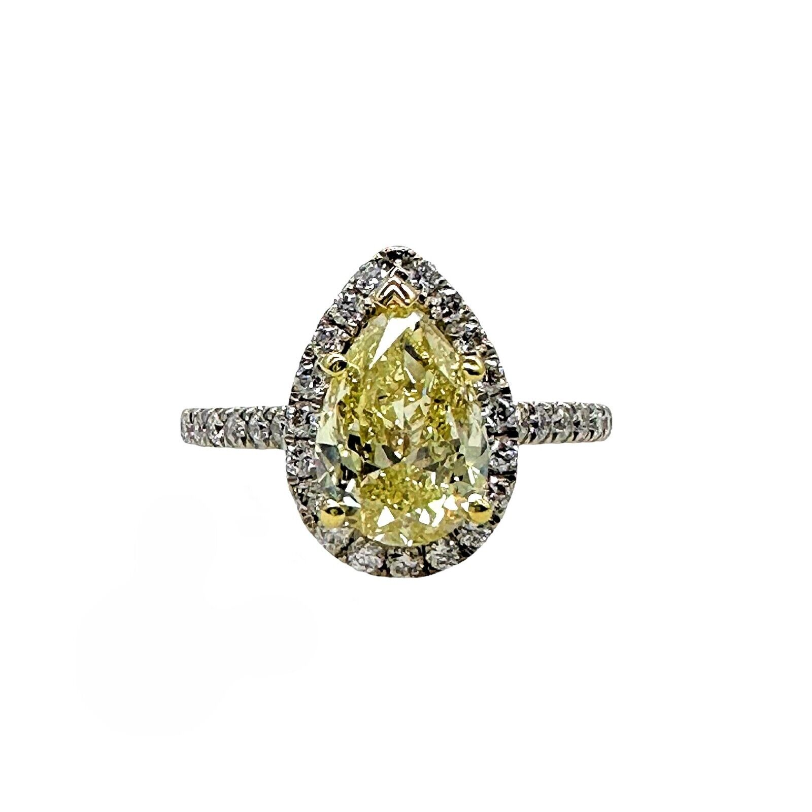 Pear Shape 2.40 Carats Natural FLBG Yellow SI2 Halo Diamond Engagement Ring
