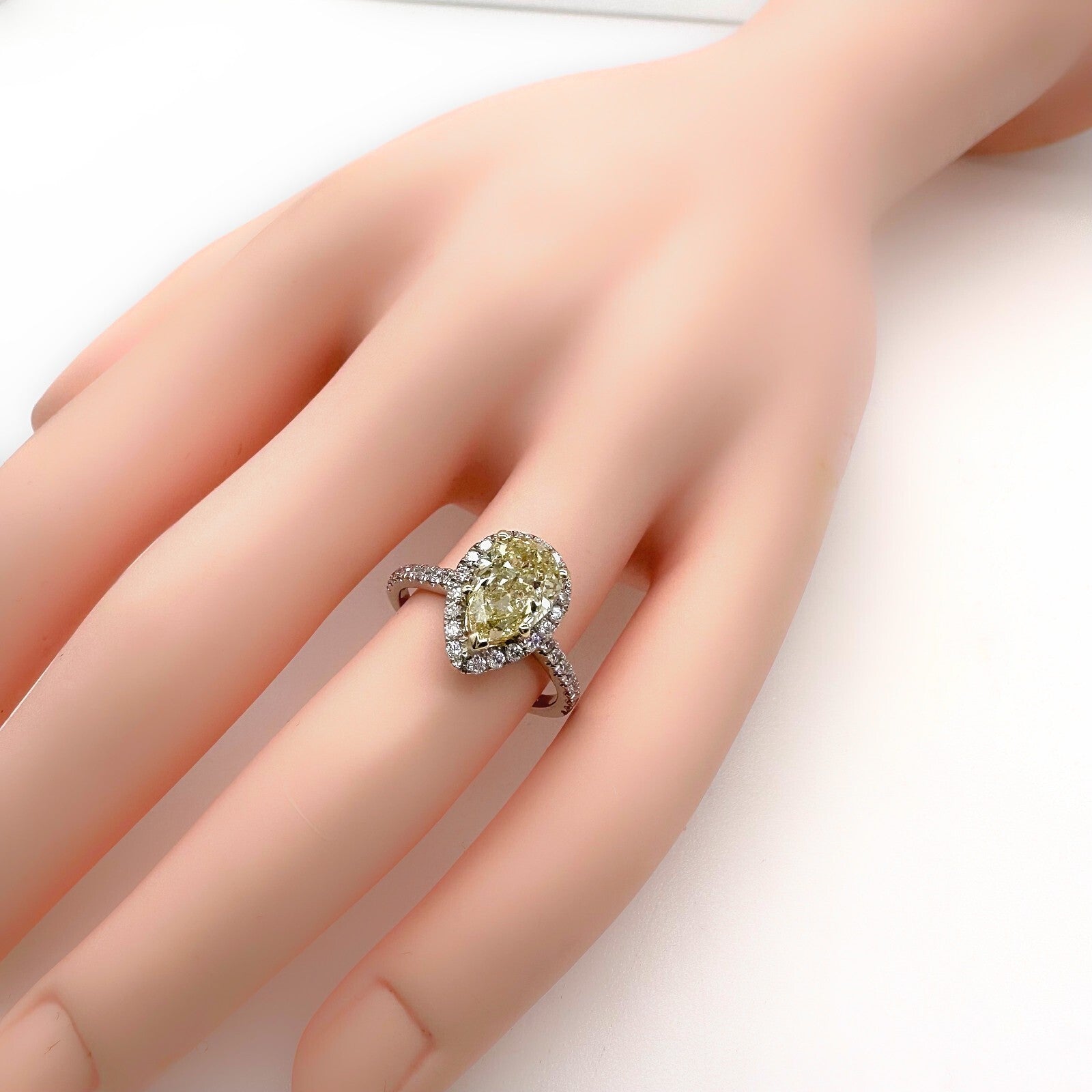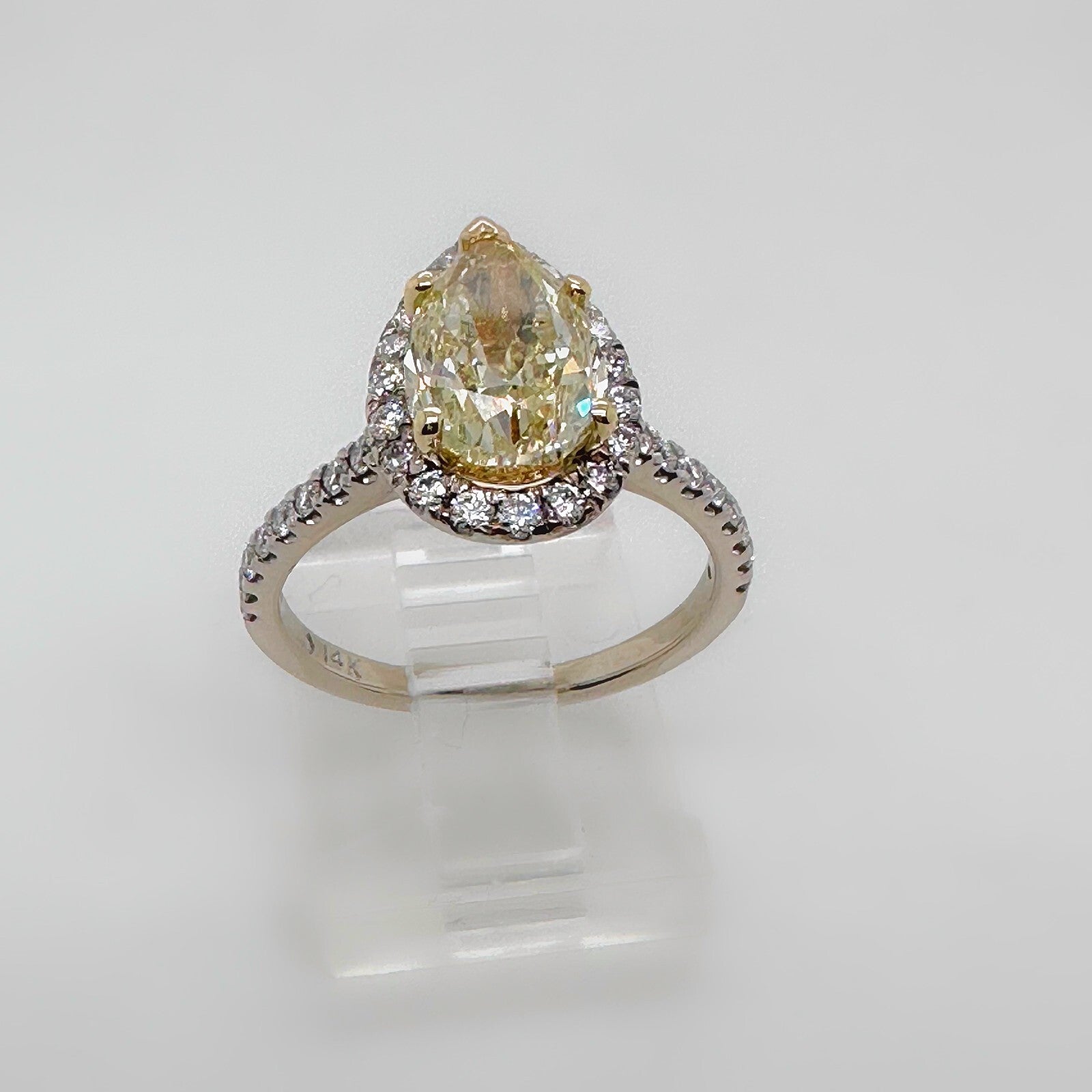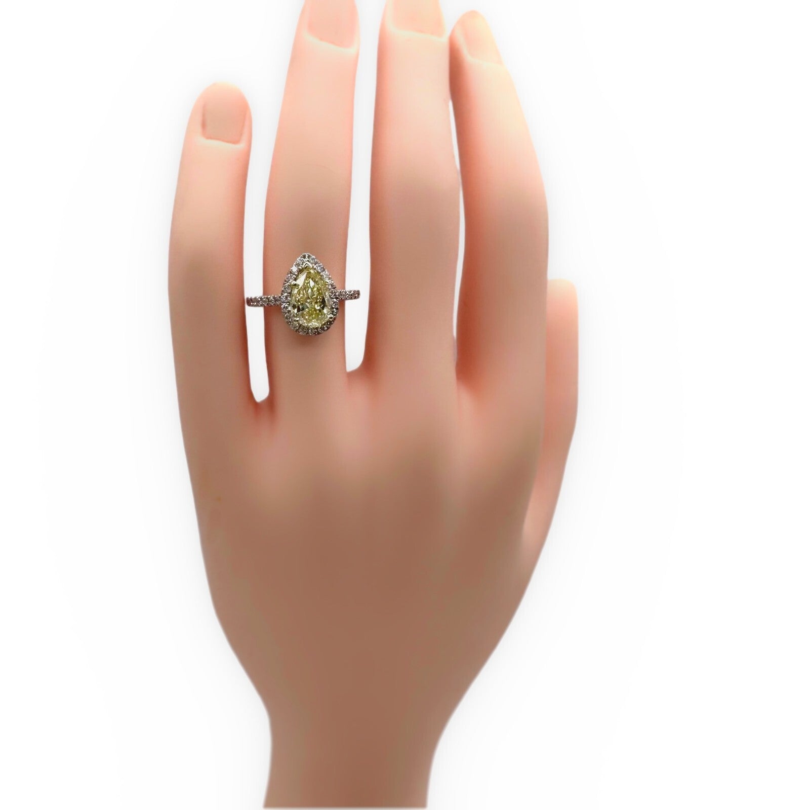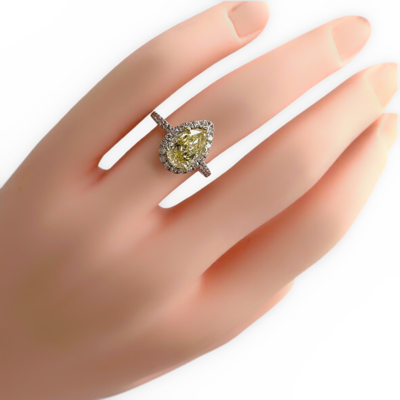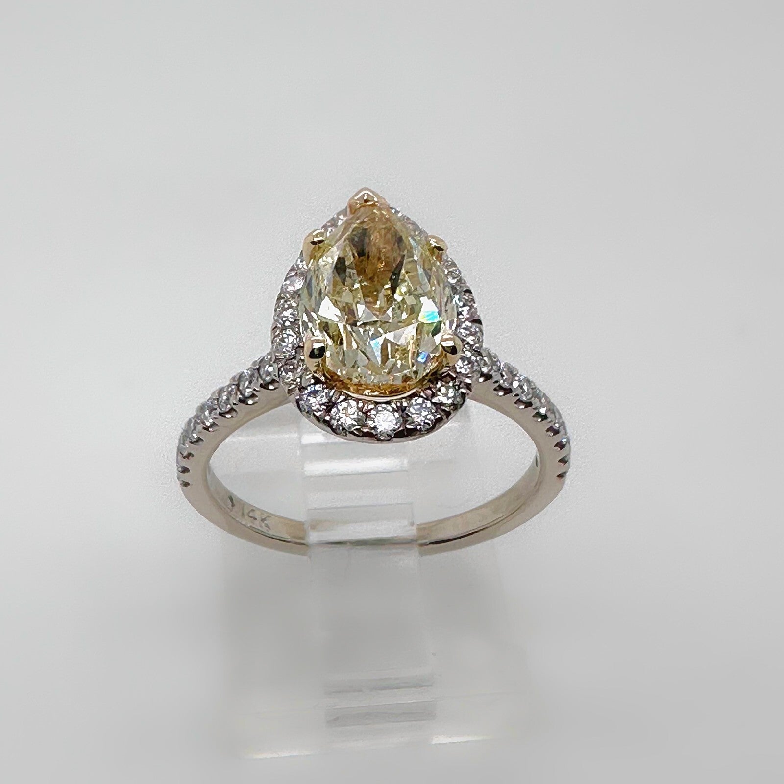 Pear Shape 2.40 Carats Natural FLBG Yellow SI2 Halo Diamond Engagement Ring