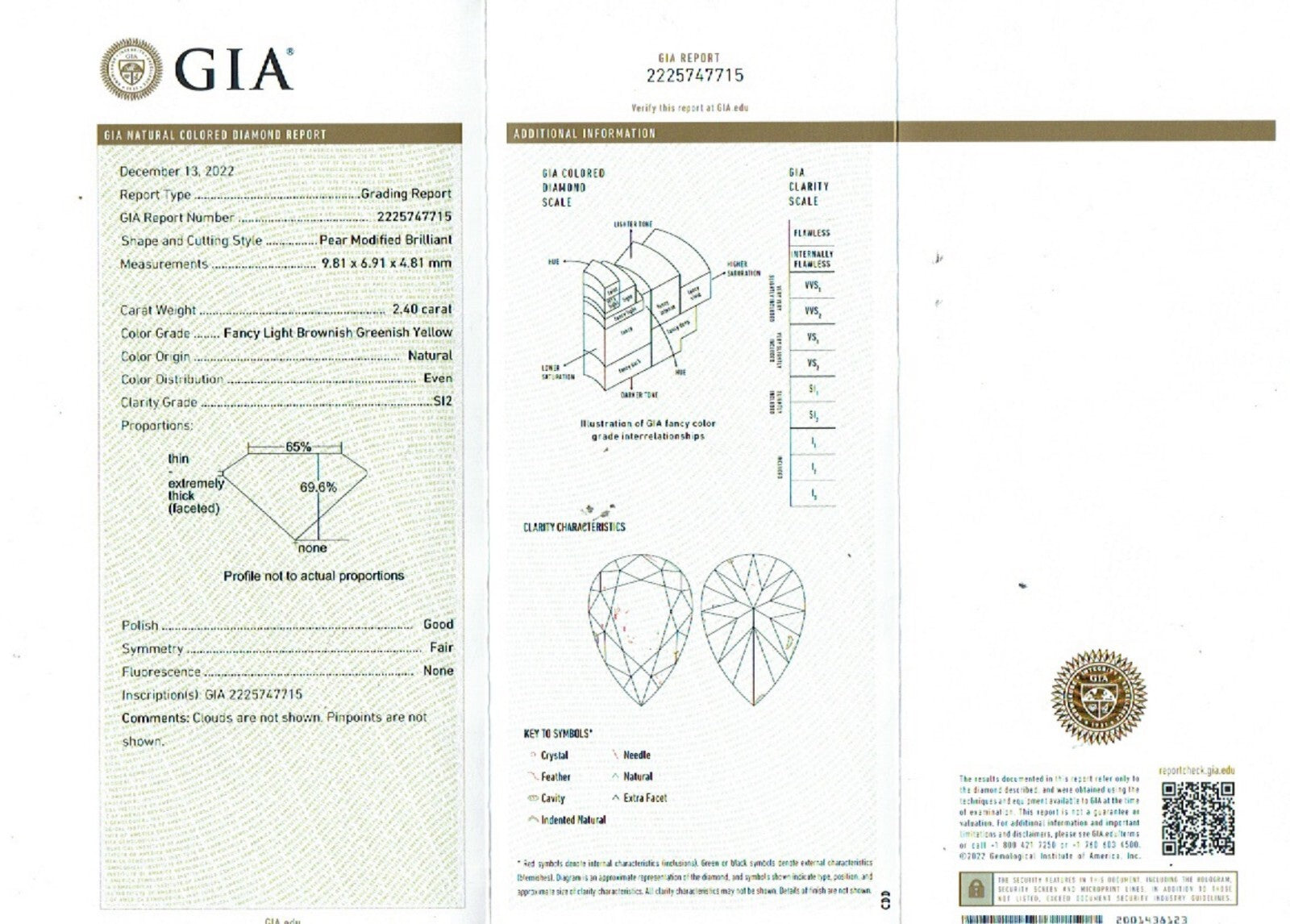 Color & Clarity: Natural Fancy Light Brownish Greenish Yellow, SI2