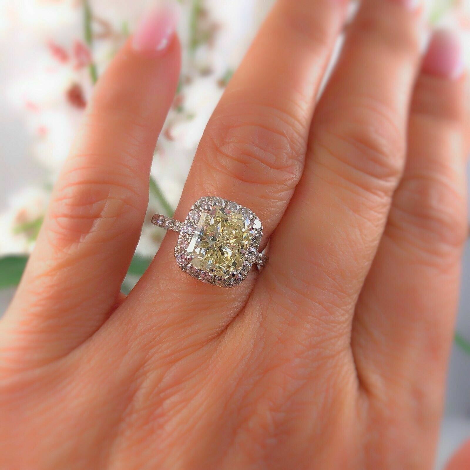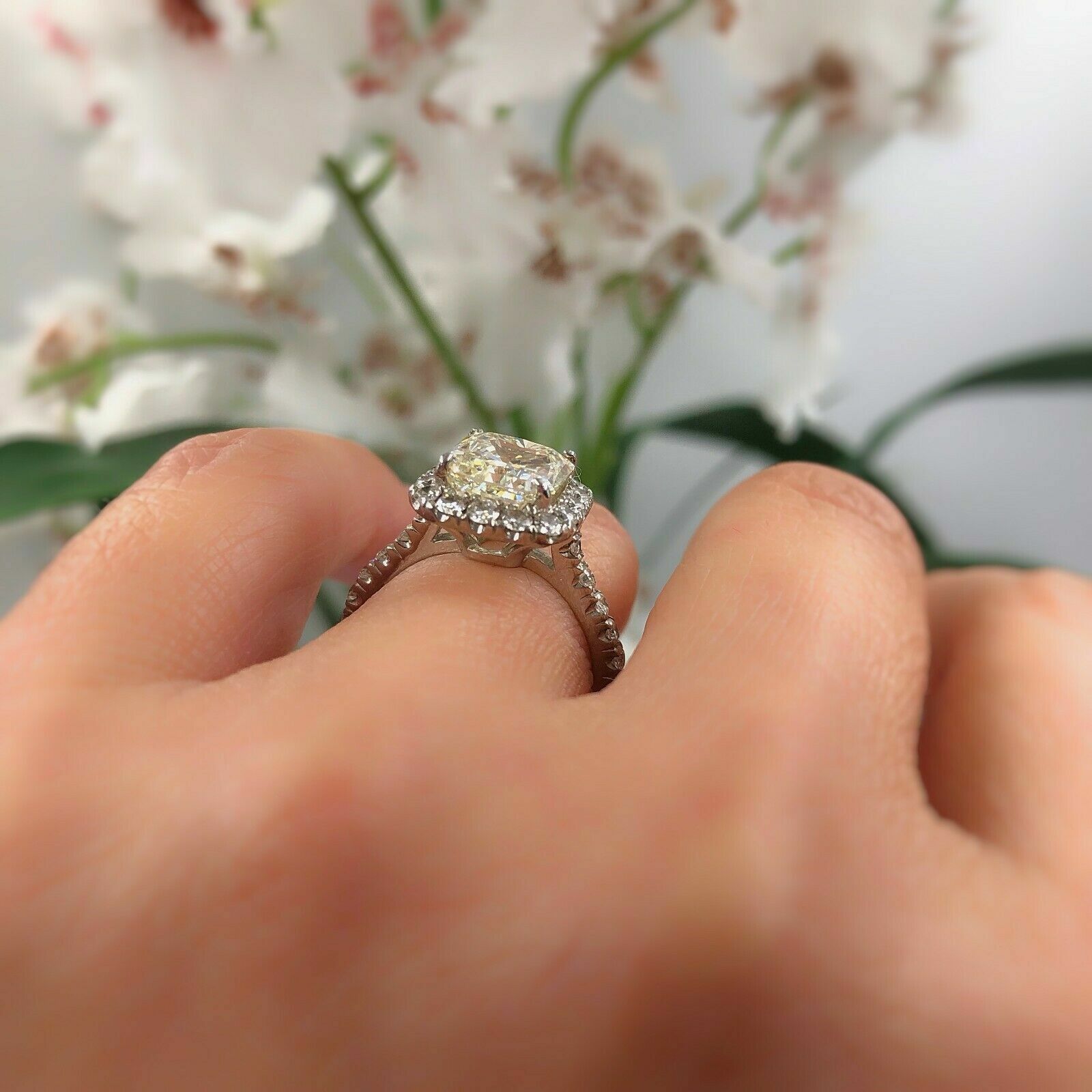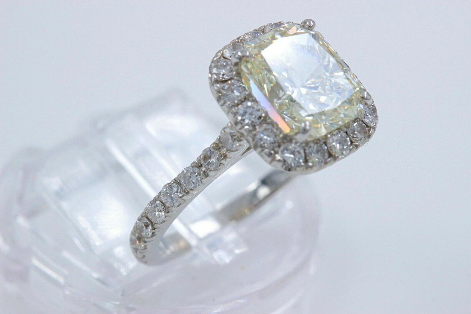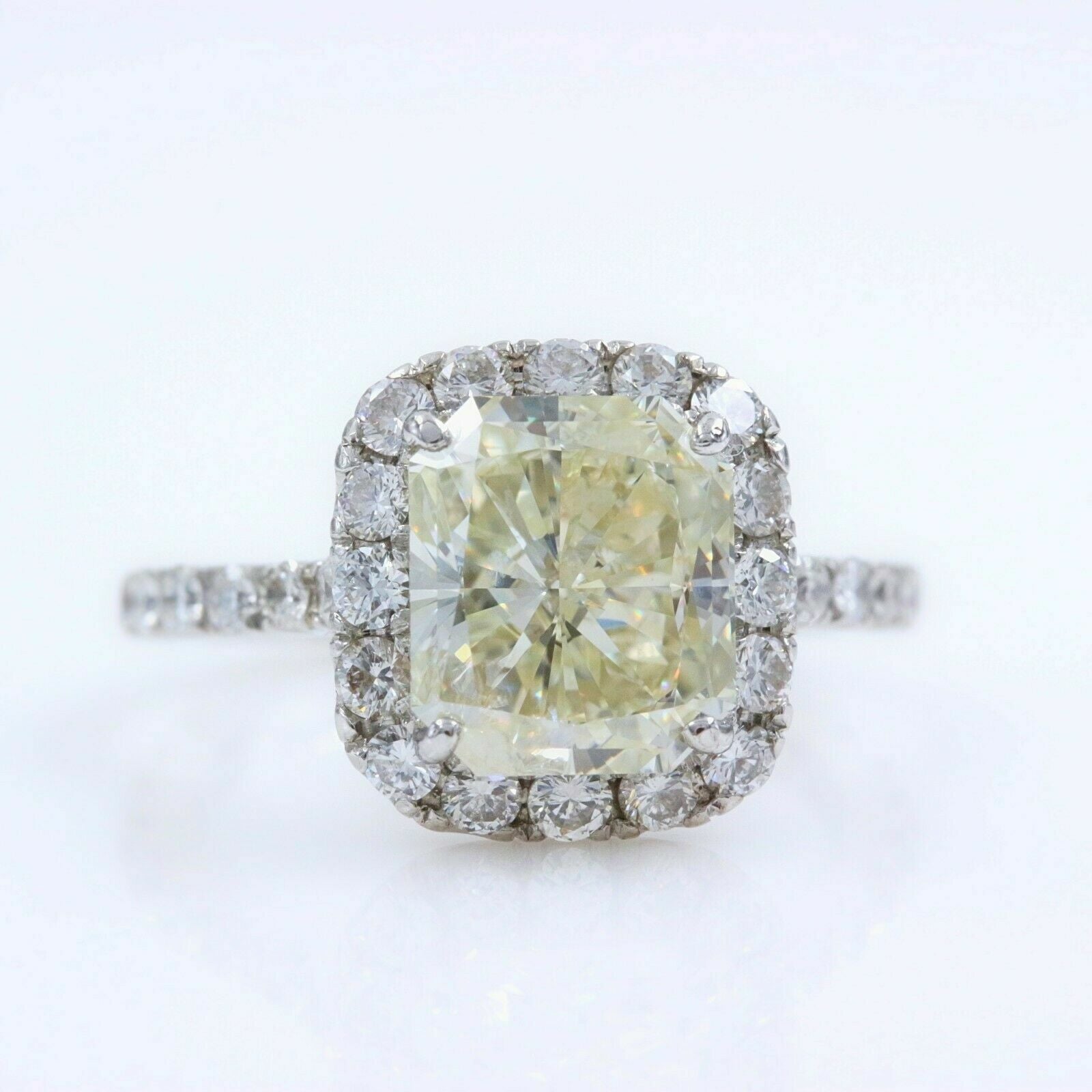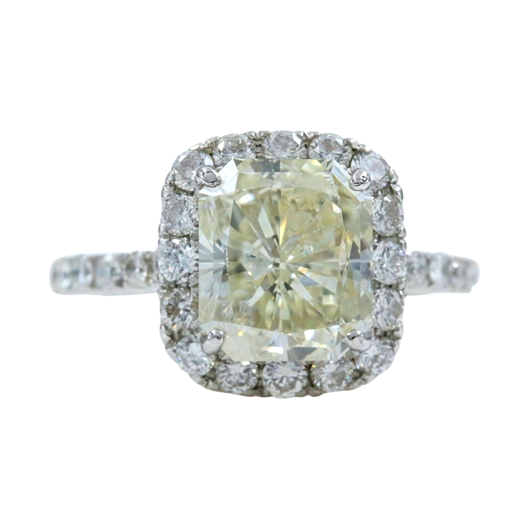 Radiant Diamond 3.85 Carats J SI2 Engagement Ring Halo Design Platinum