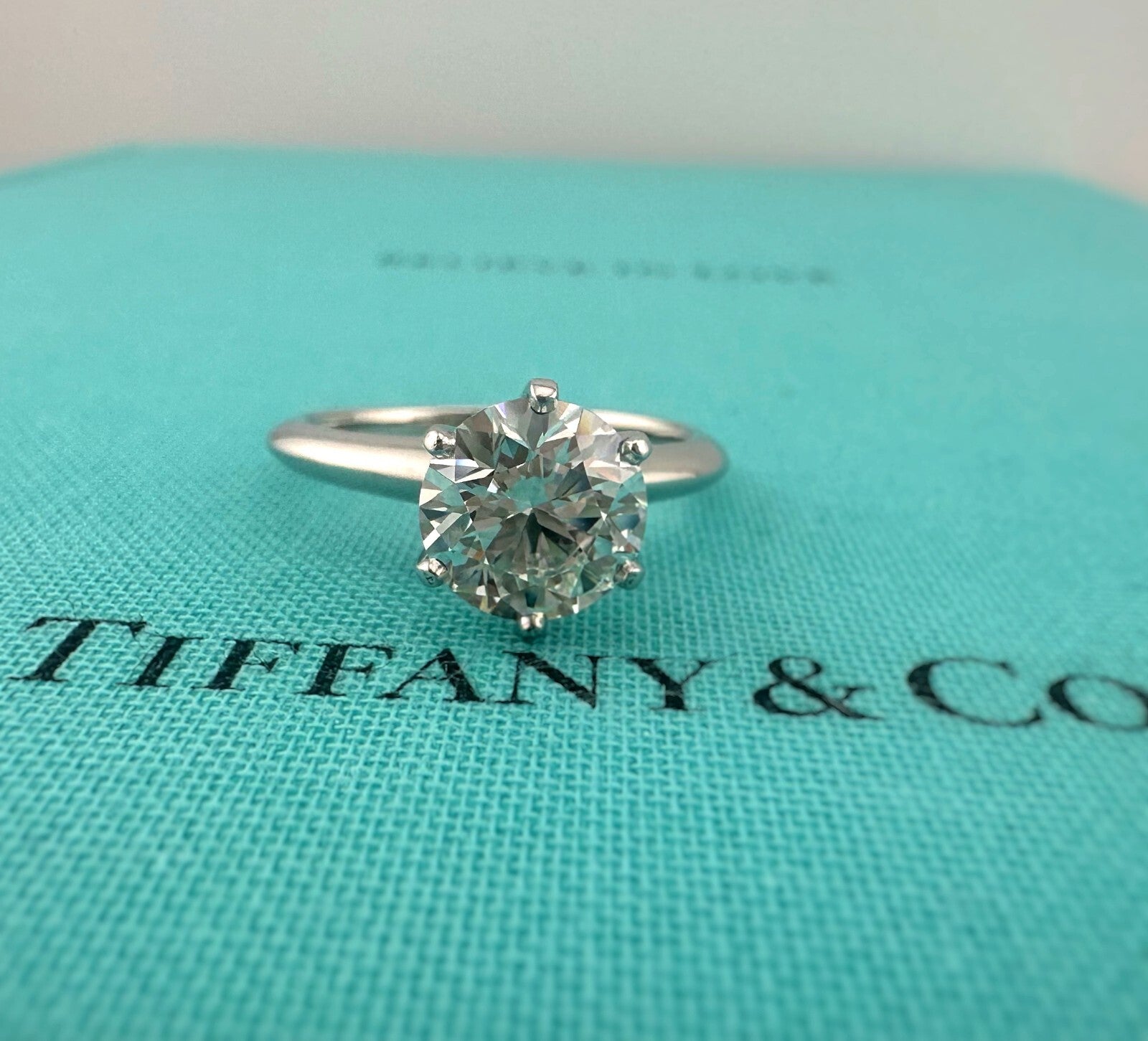 Tiffany & Co Platinum Round Diamond Engagement Ring 1.86 cts H VS1