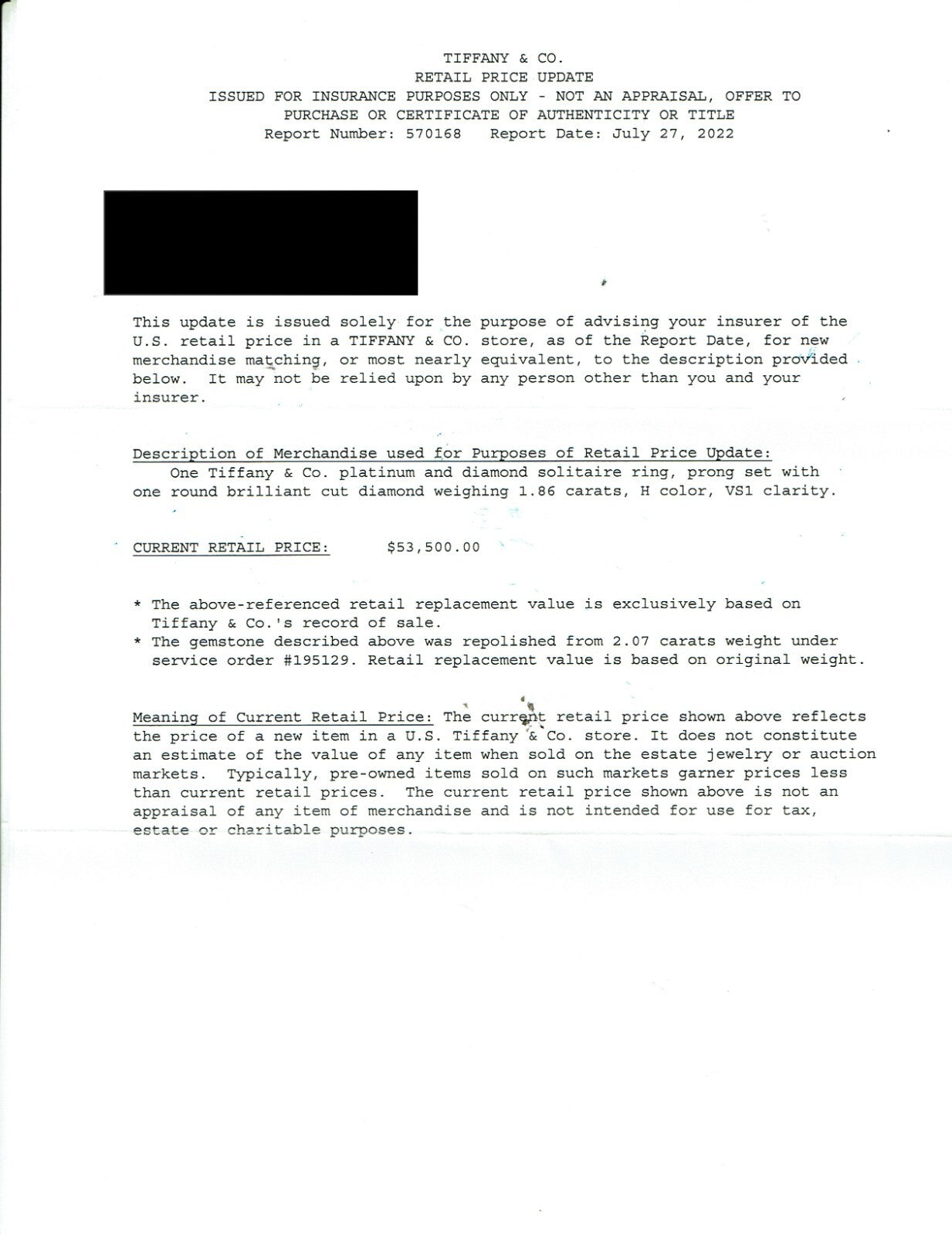 Hallmark: 22292692 D1.86ct © TIFFANY&CO. PT950