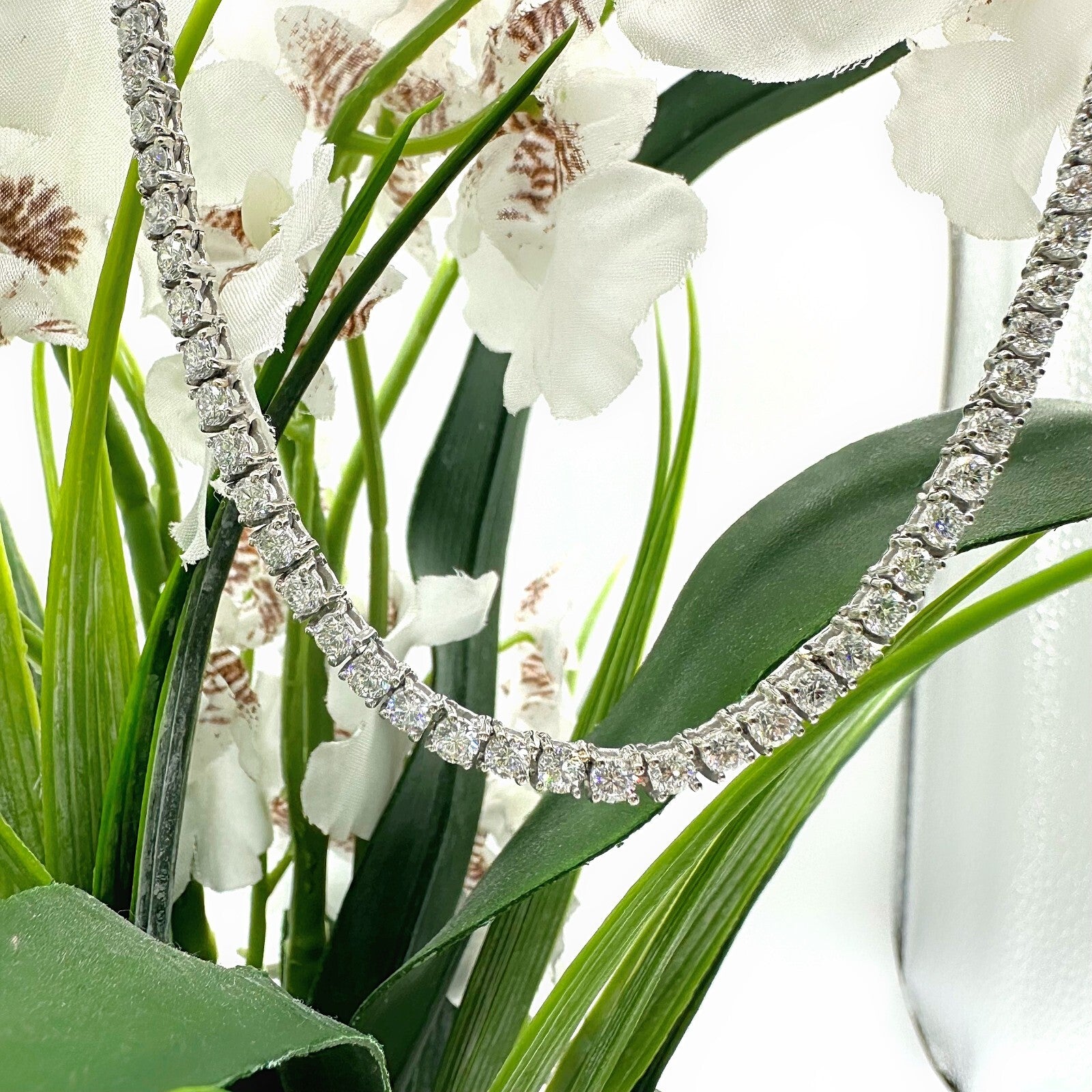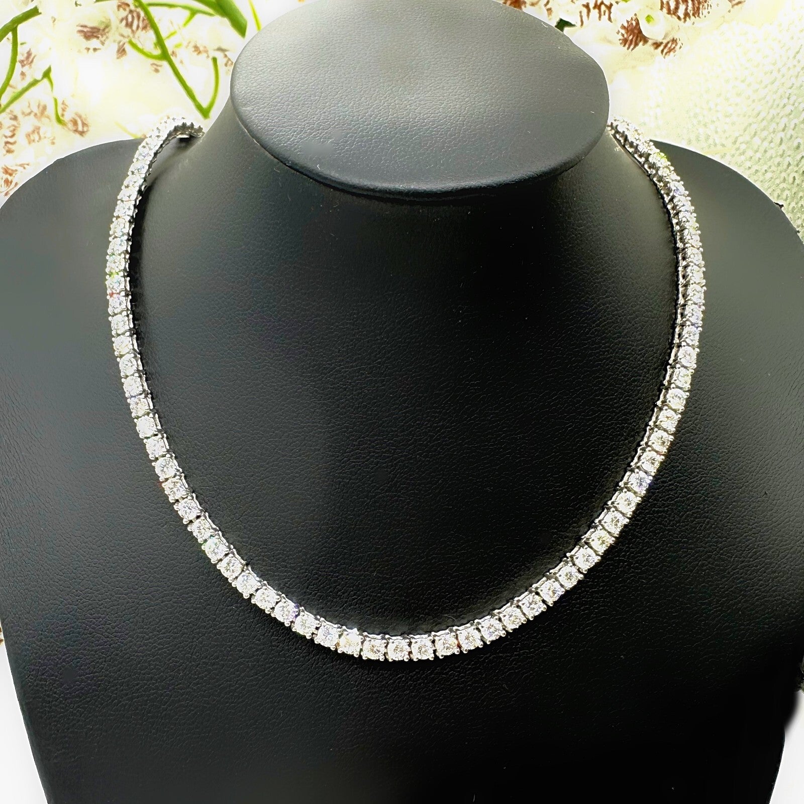 Diamond Eternity Tennis Necklace Round Brilliant ~ 12.00 tcw 14K White Gold