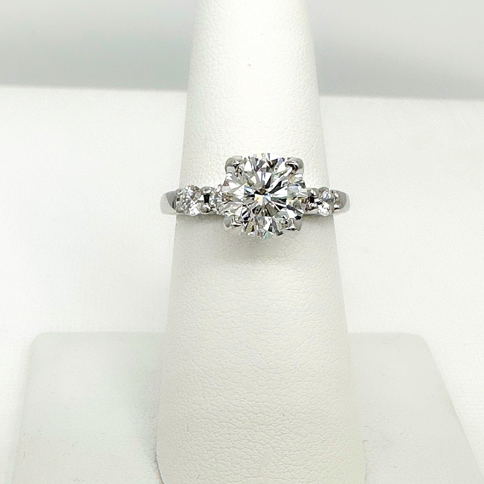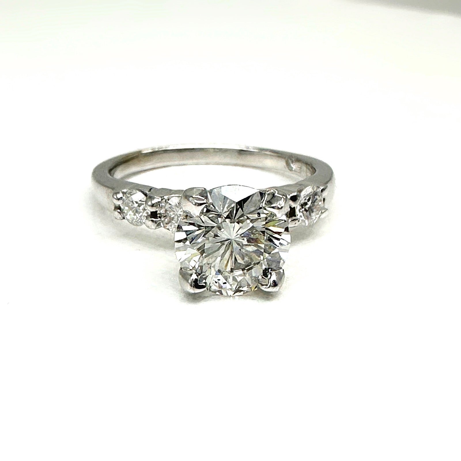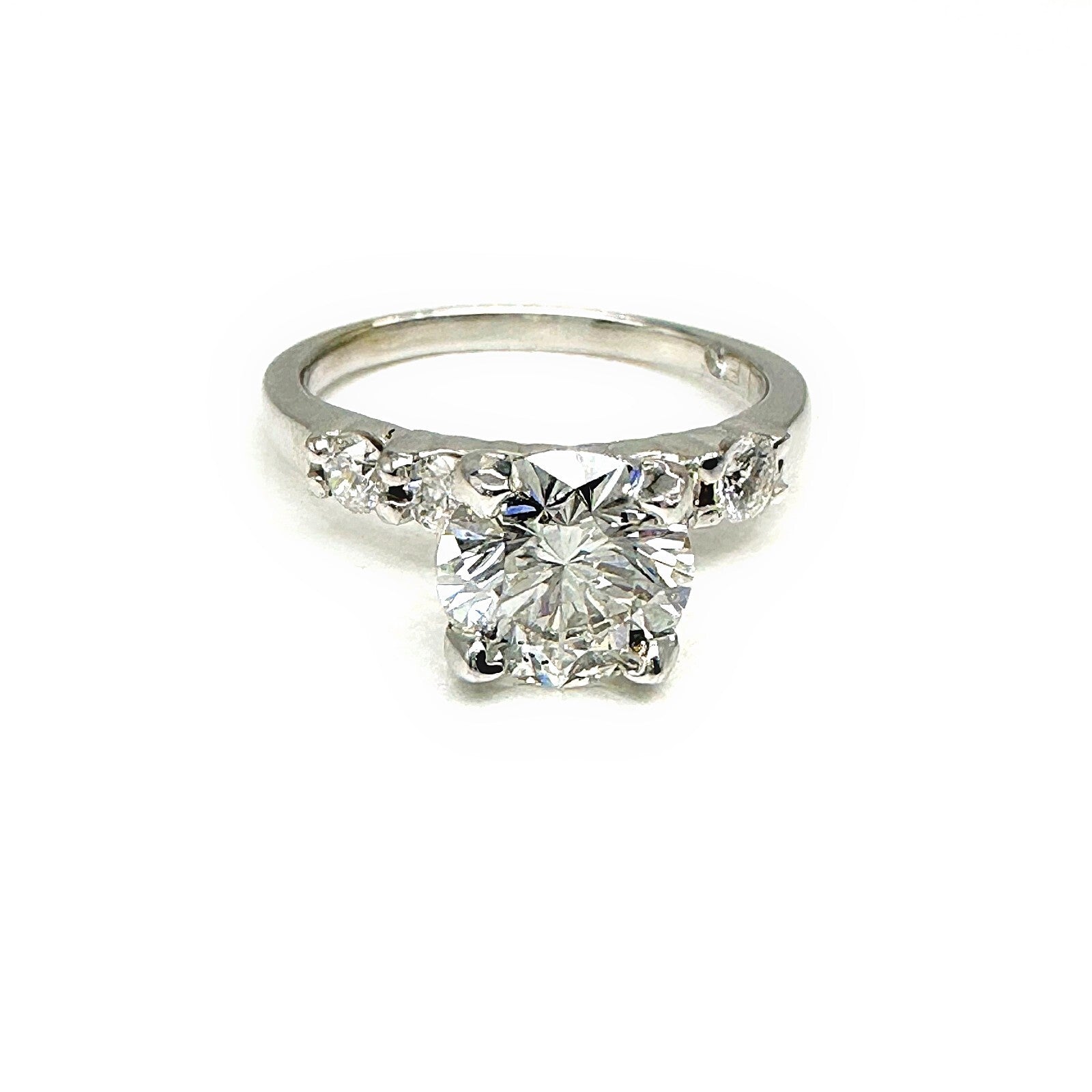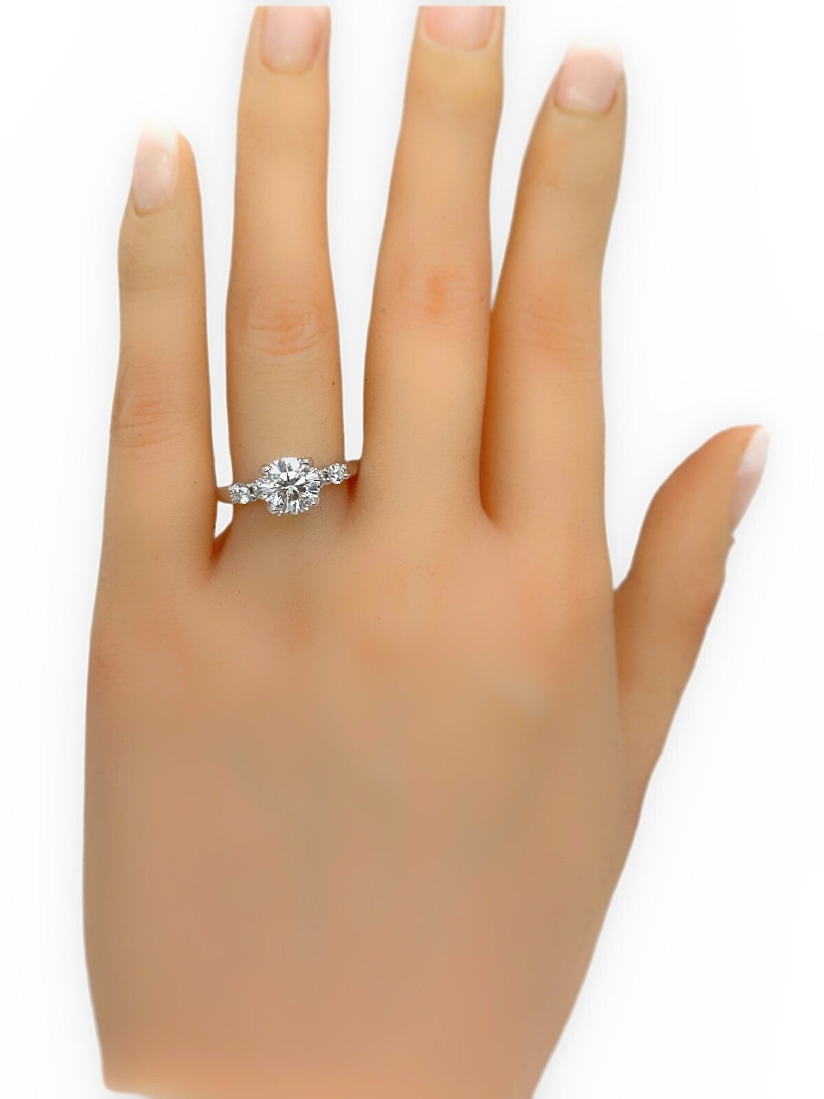 The LEO 1.95 cts Round Diamond Engagement Ring with Side Diamonds 18k WG Plat