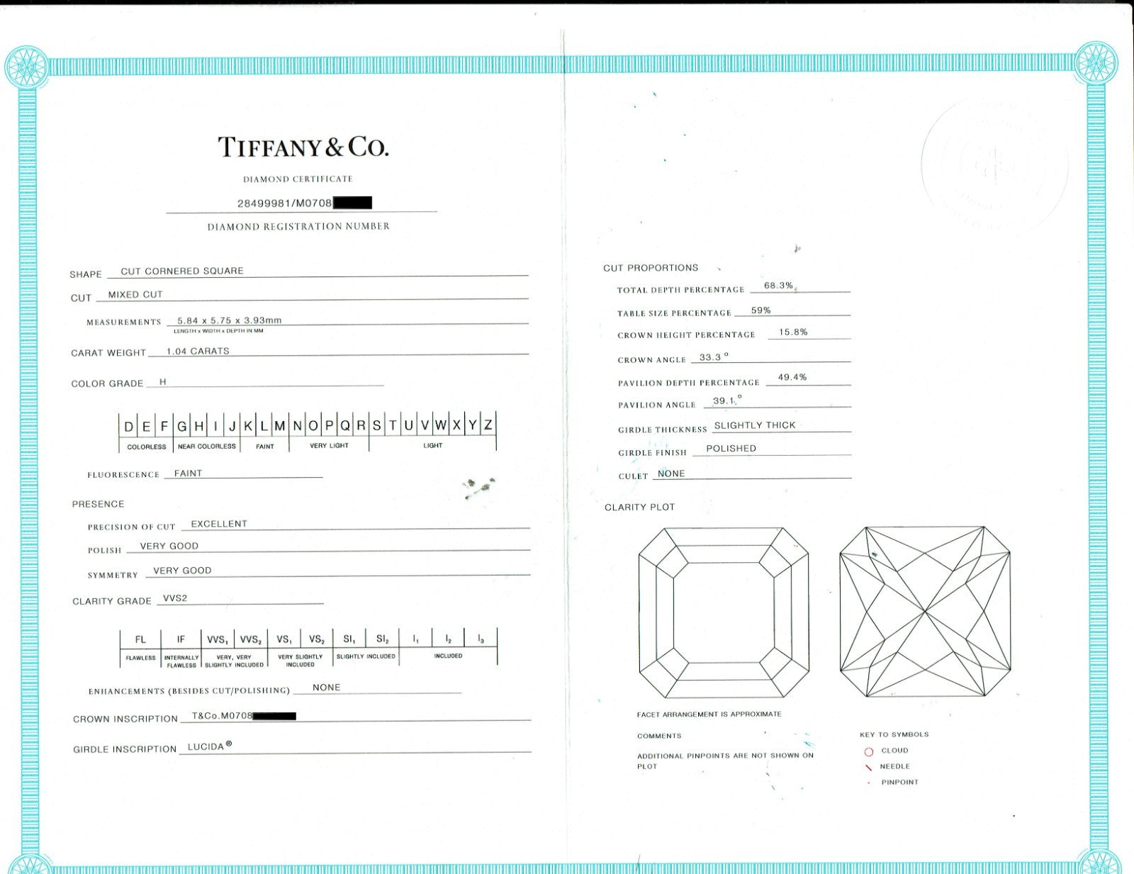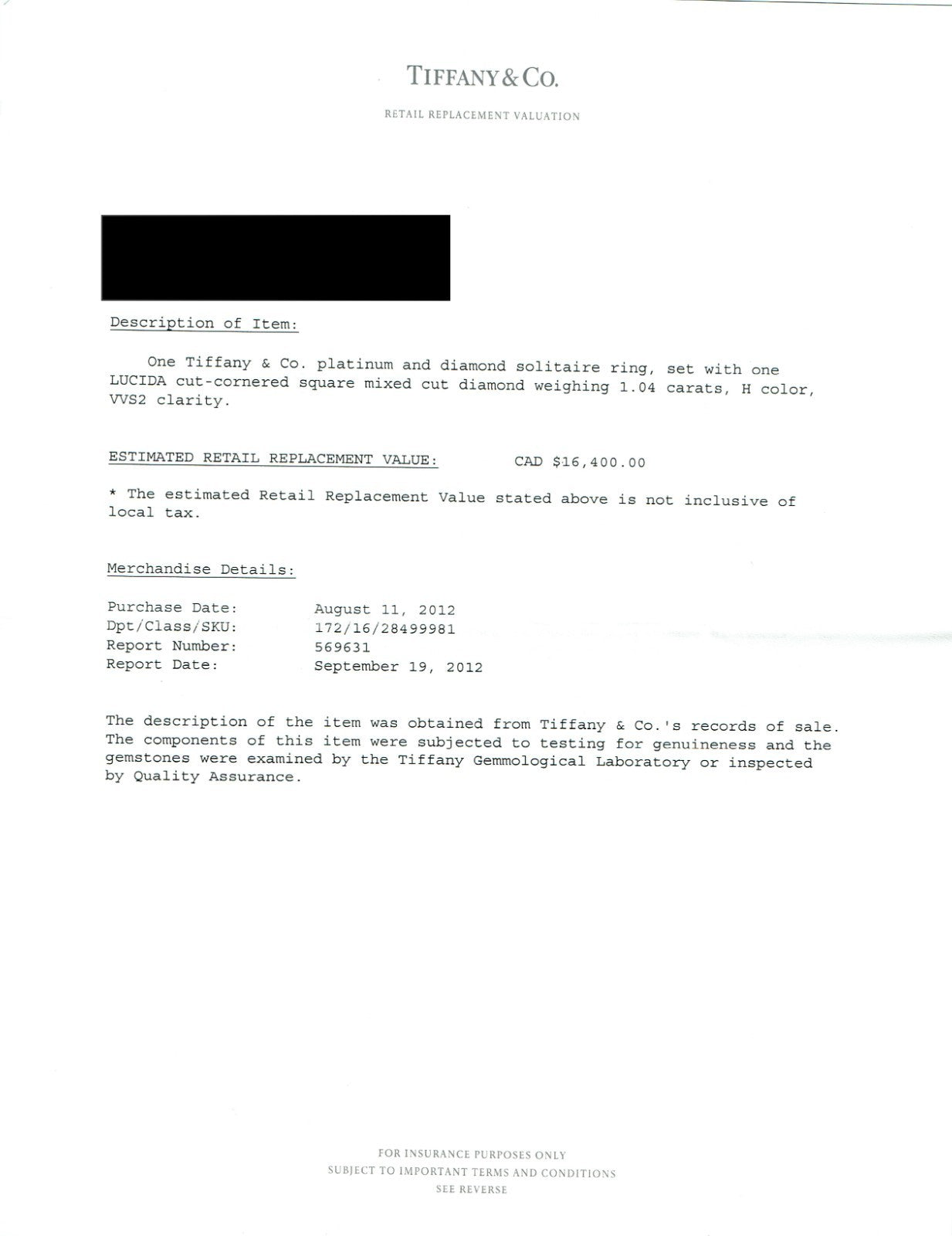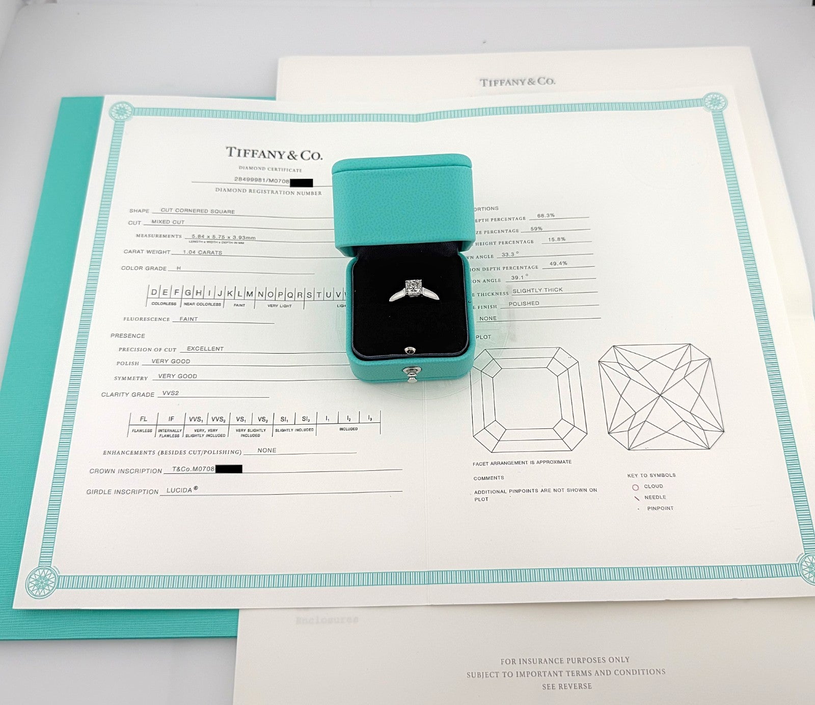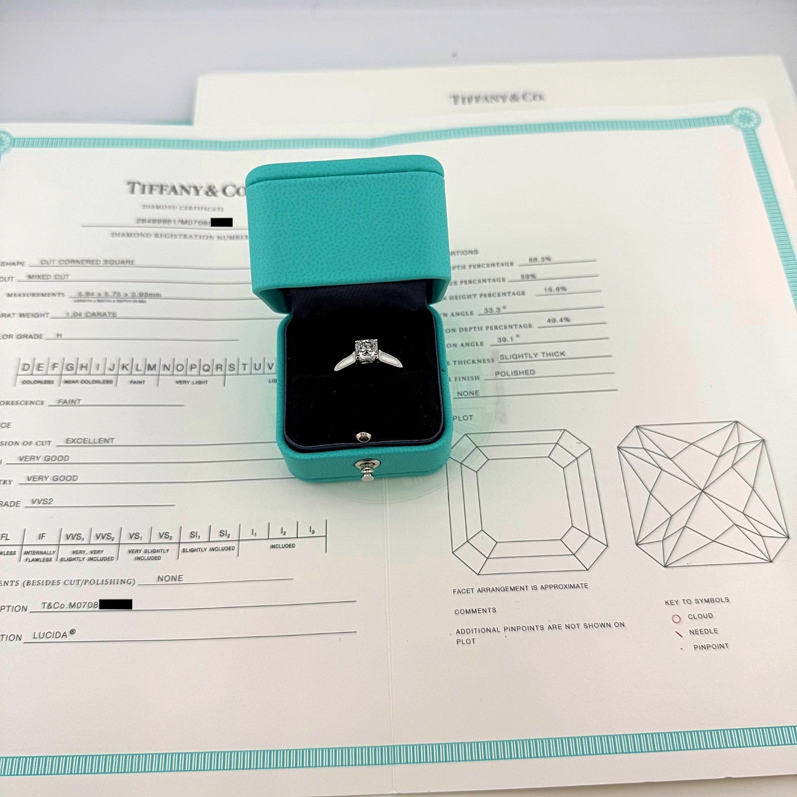 Tiffany & Co Lucida Platinum Diamond Engagement Ring 1.04 CTS H VVS2
