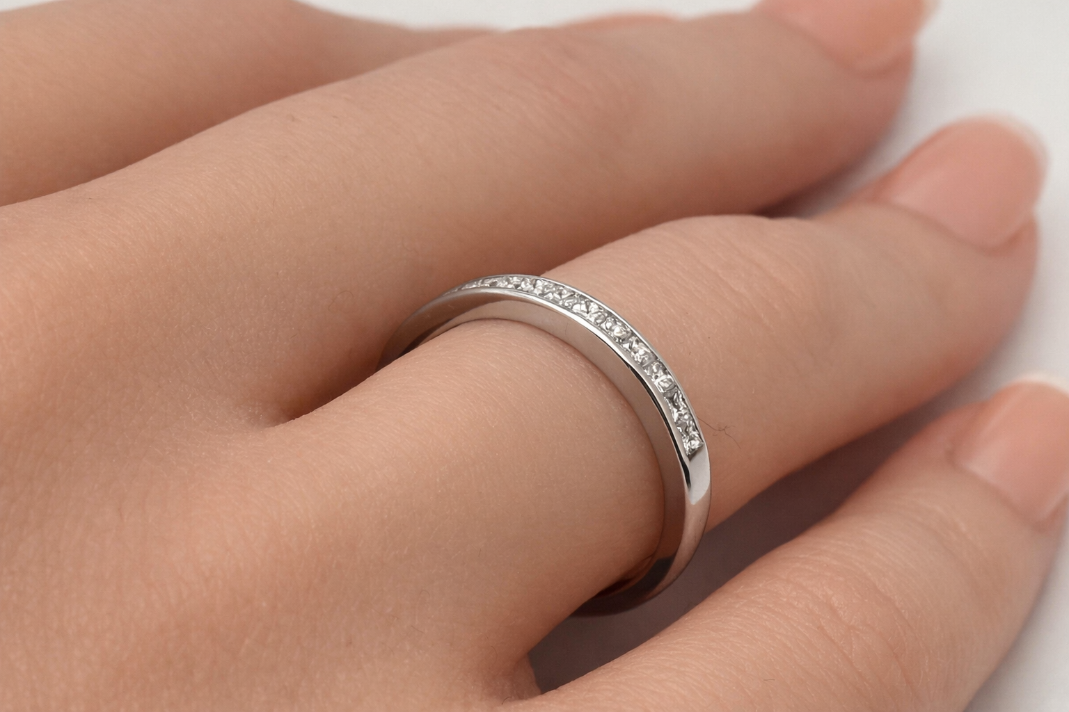 Style: Half Circle Diamond Wedding Band