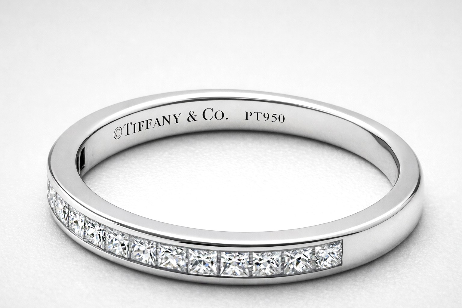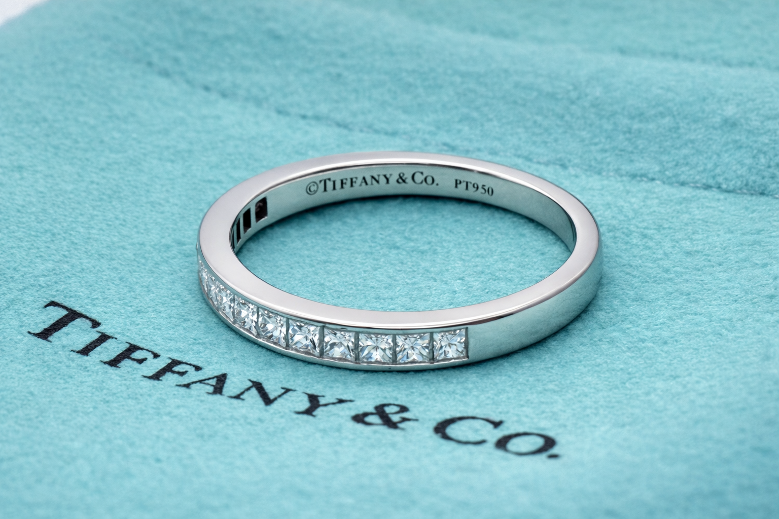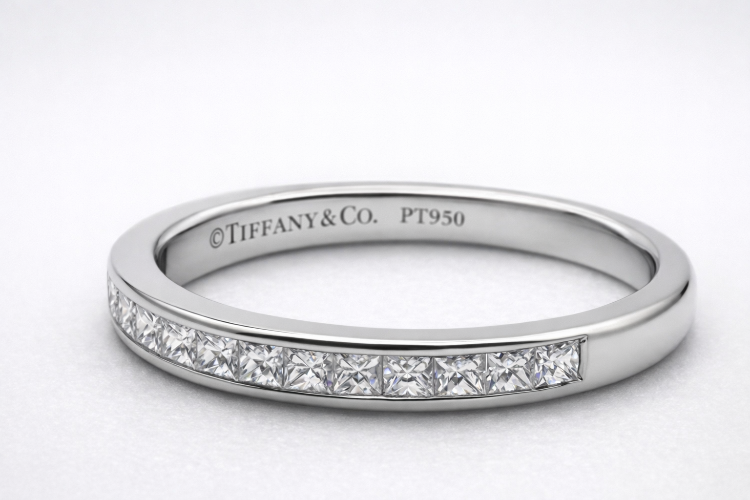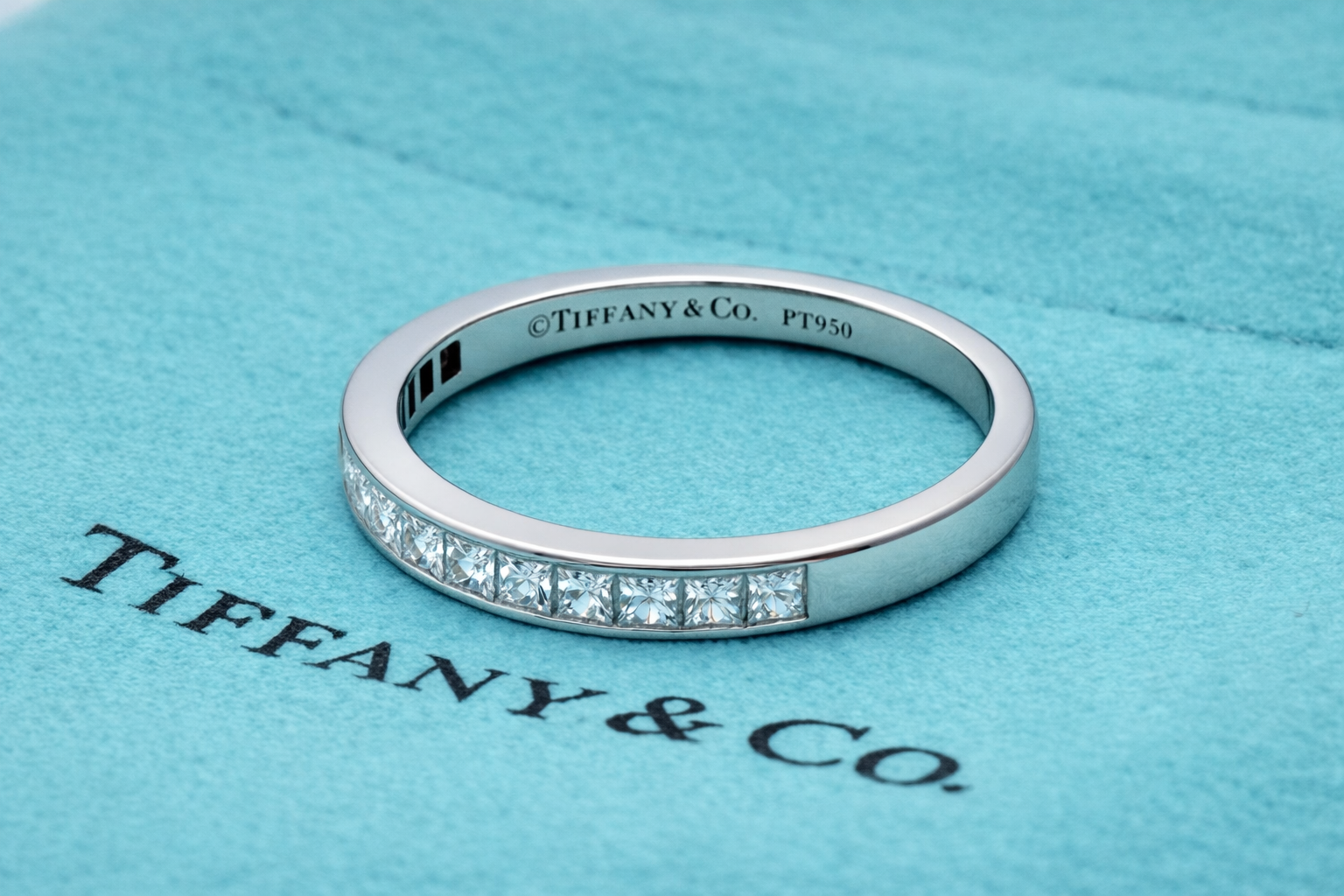 TIFFANY & Co. Platinum 2.6mm Half Circle Princess Cut Diamond Band Ring 5.75