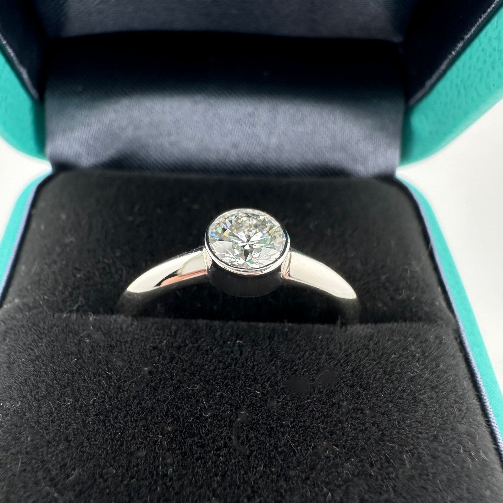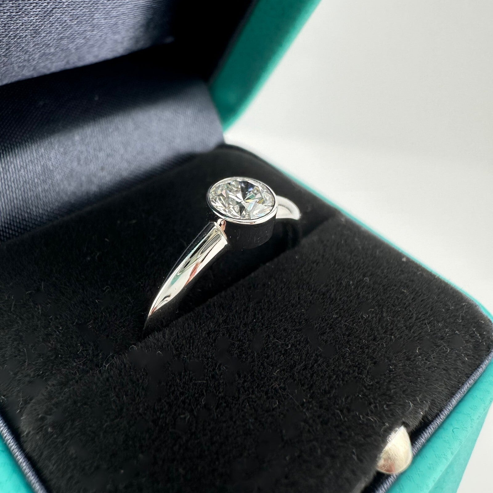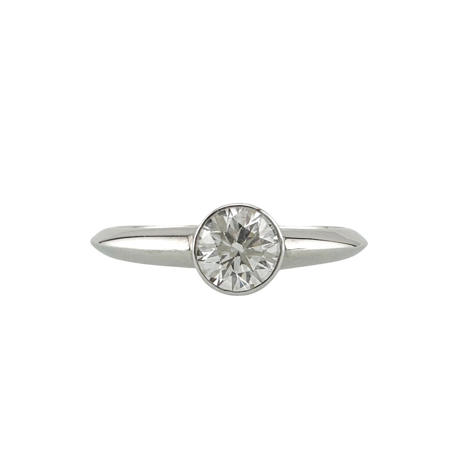 Tiffany & Co Platinum Bezet Diamond Engagement Ring Round 0.57ct F VS1 Bezel Set