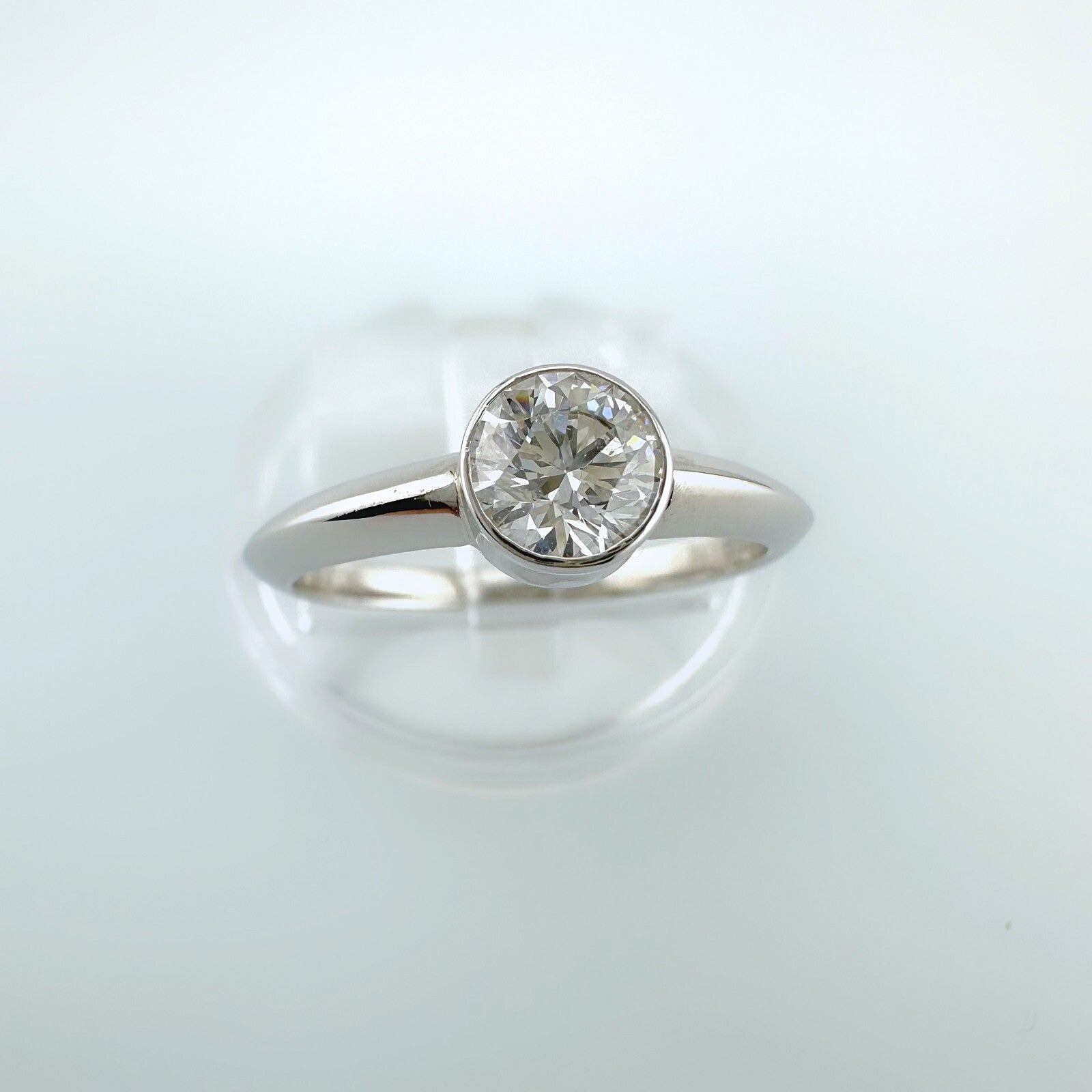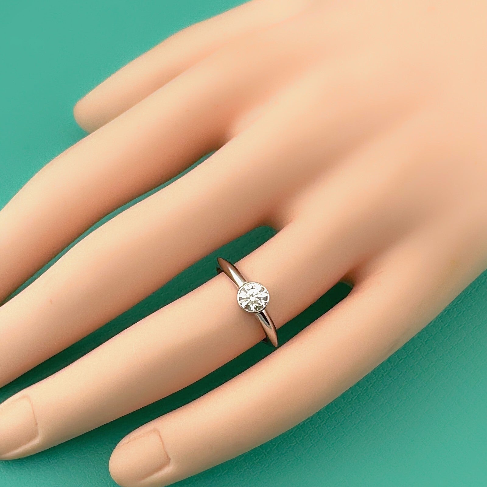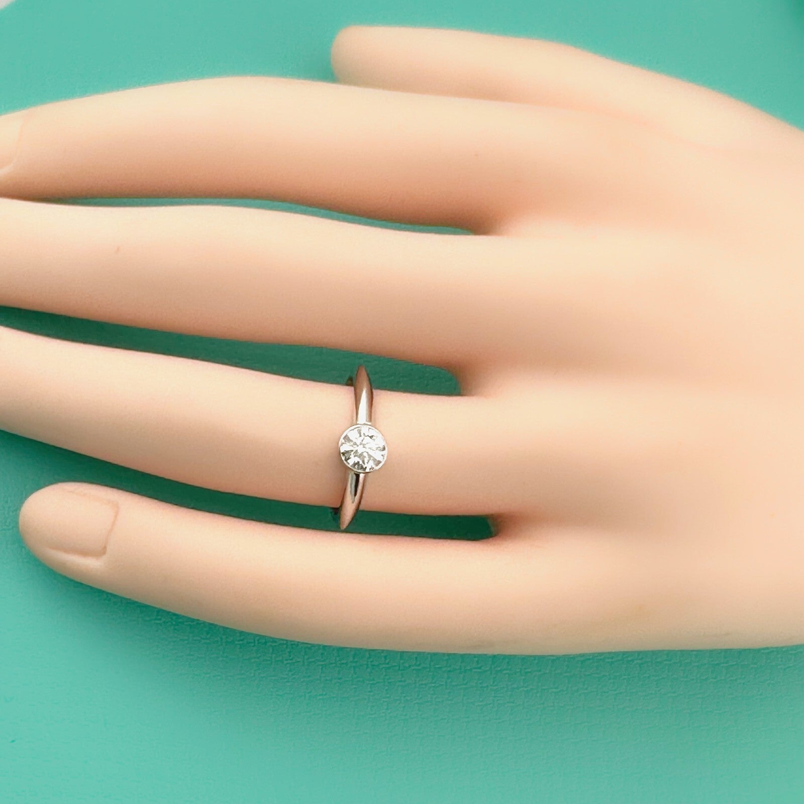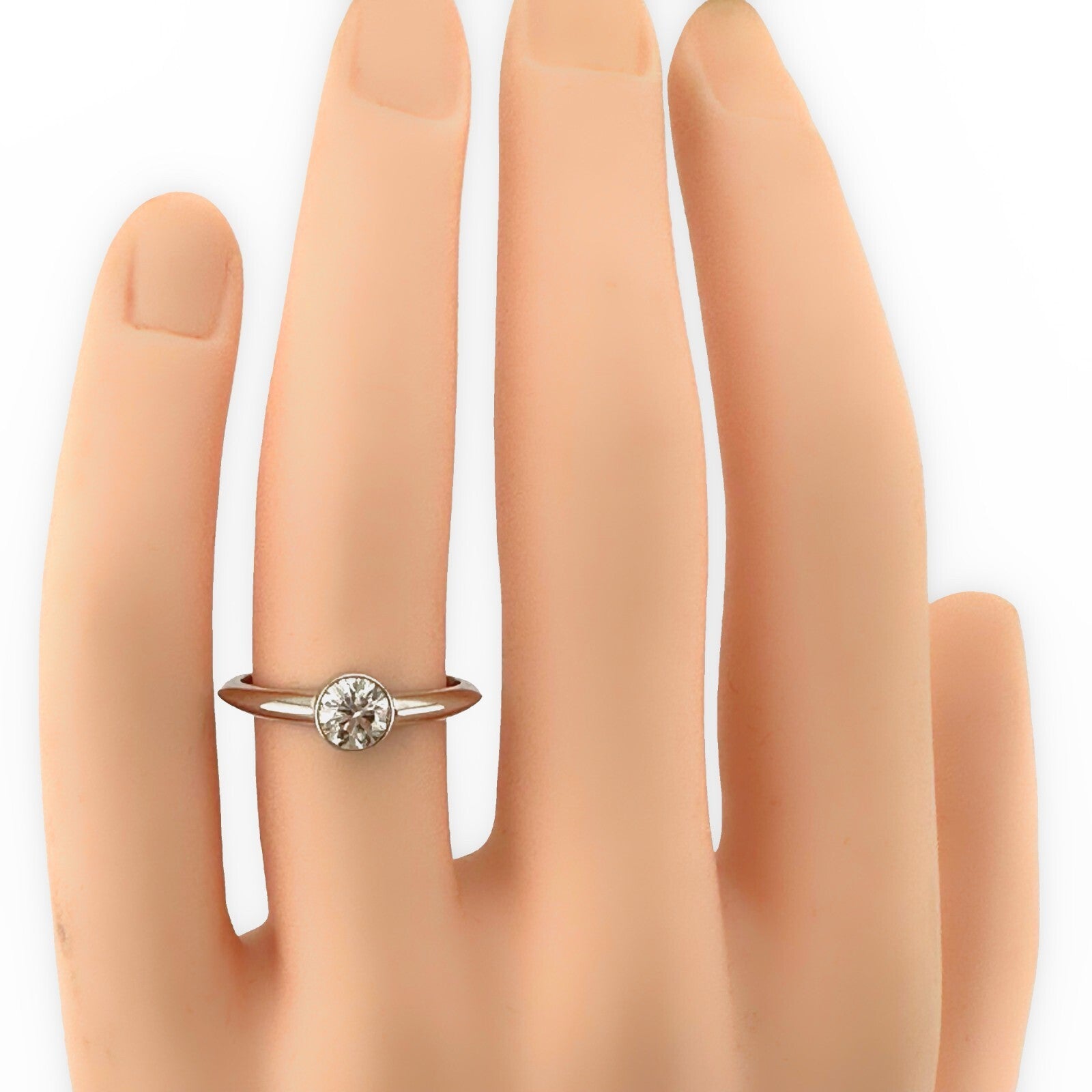 Tiffany & Co Platinum Bezet Diamond Engagement Ring Round 0.57ct F VS1 Bezel Set