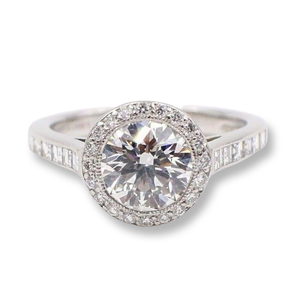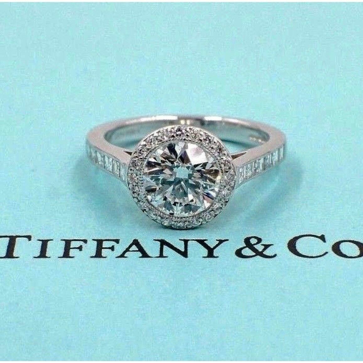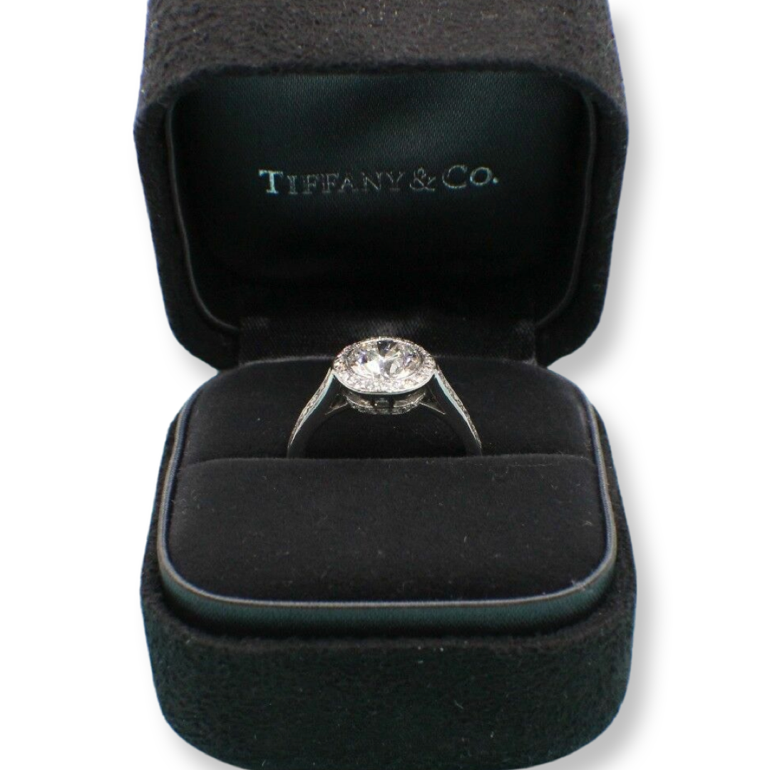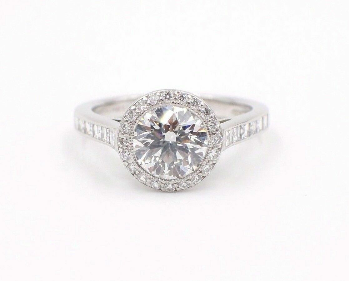 Tiffany & Co Platinum Diamond Engagement Ring Bead Set 1.59 cts Round H VVS2