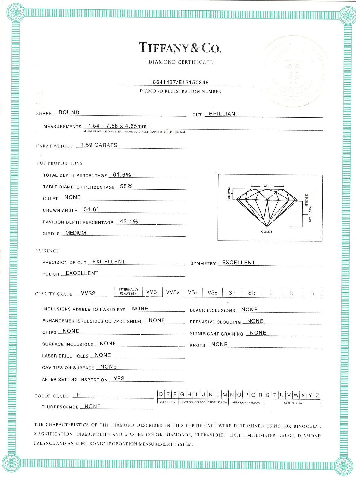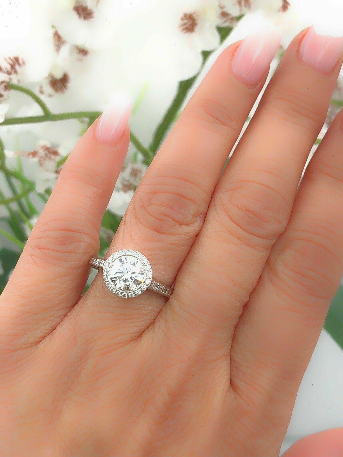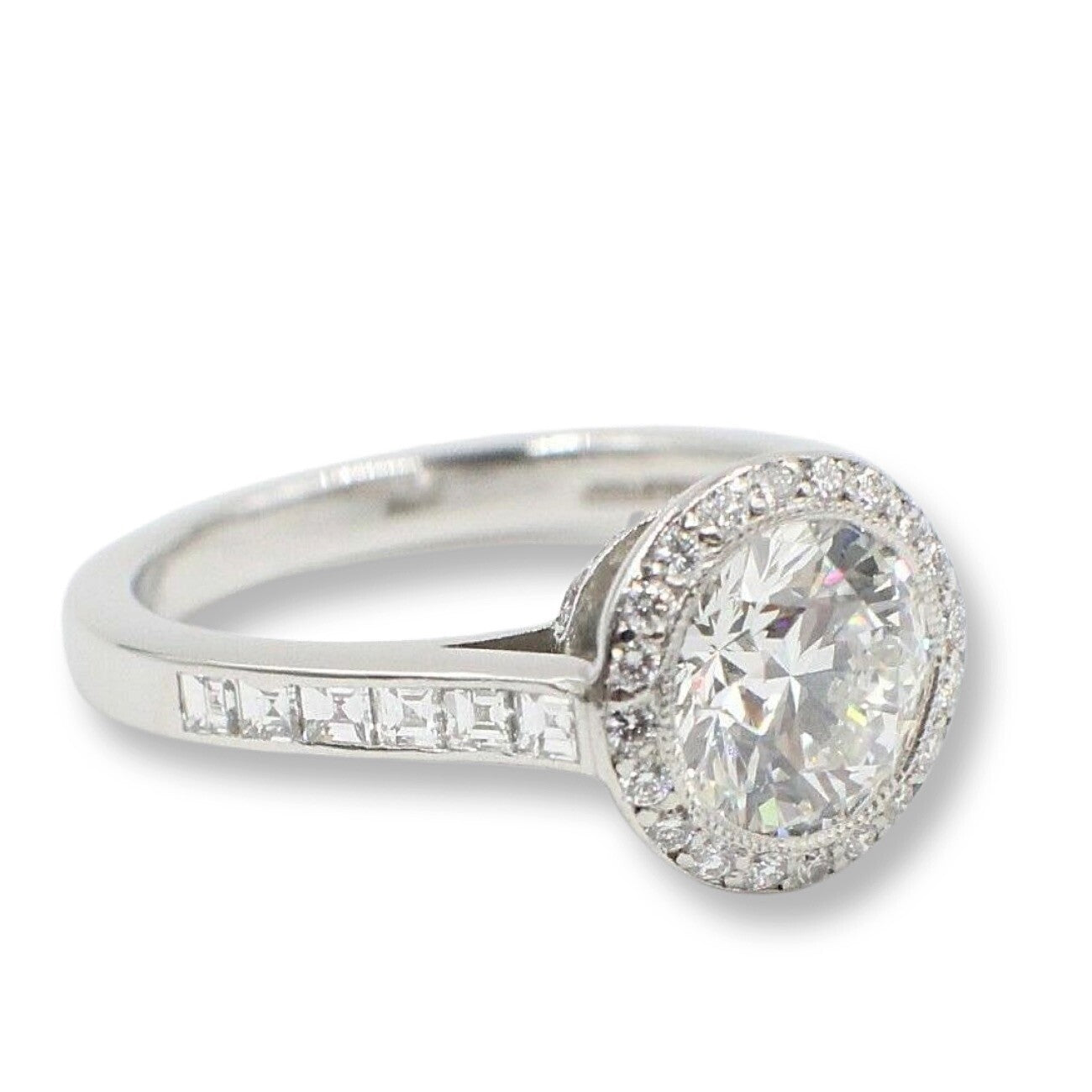 Tiffany & Co Platinum Diamond Engagement Ring Bead Set 1.59 cts Round H VVS2