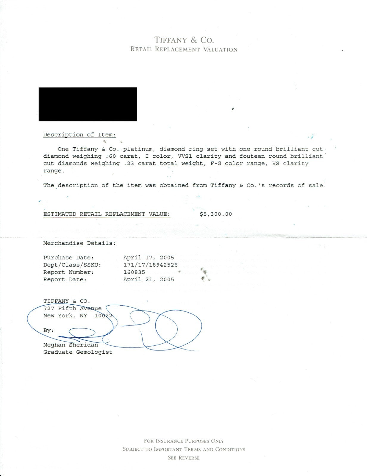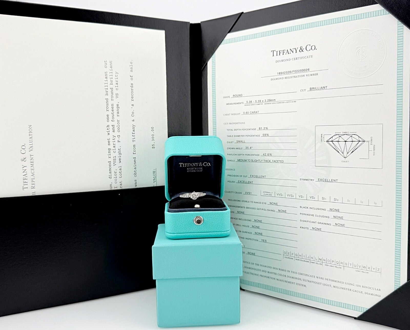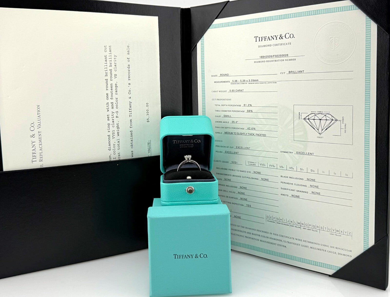 Includes: T&C Inner & Outer Ring Boxes - Tiffany Diamond Certificate & Appraisal