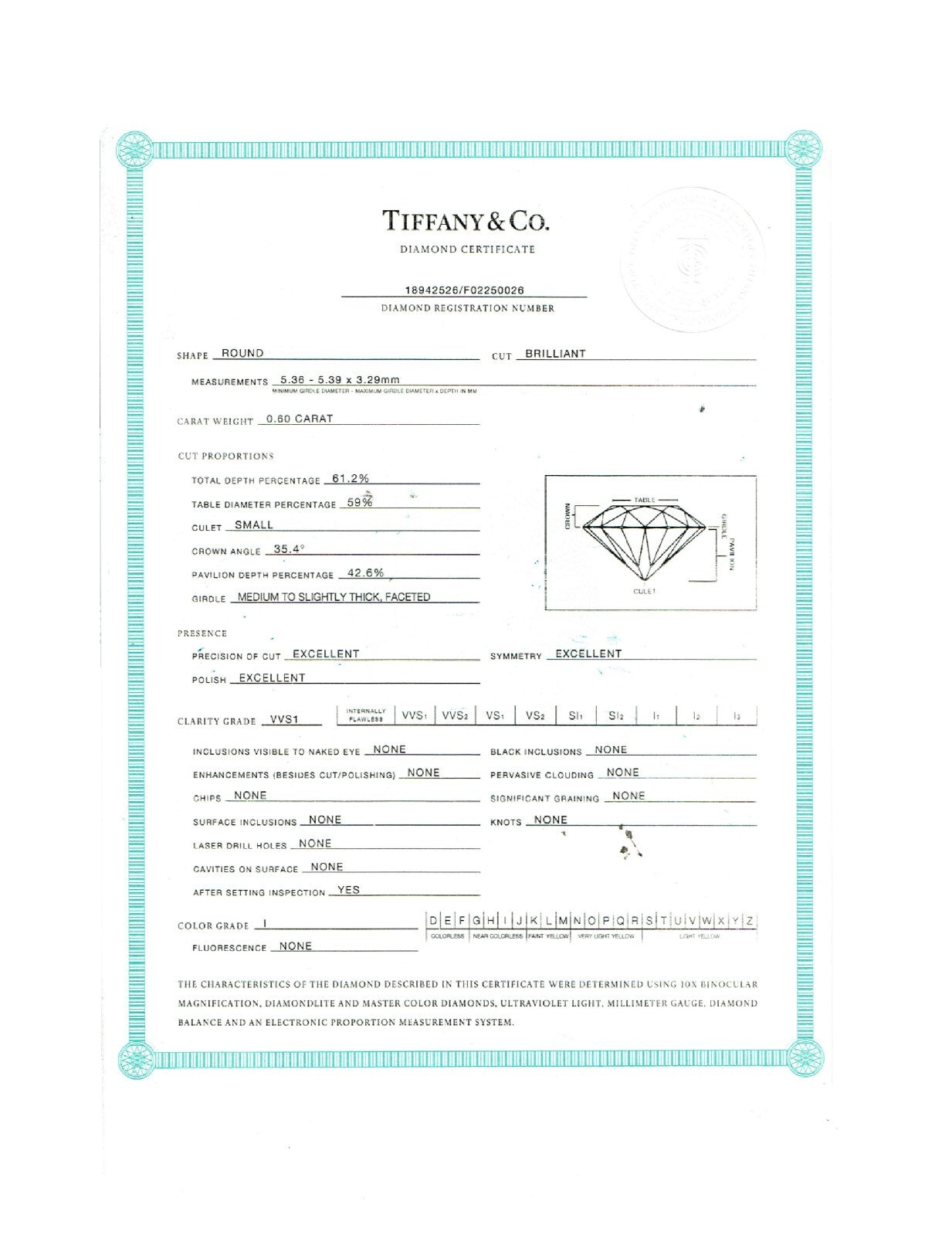 T&C Diamond Certificate: 18942526/F02250026